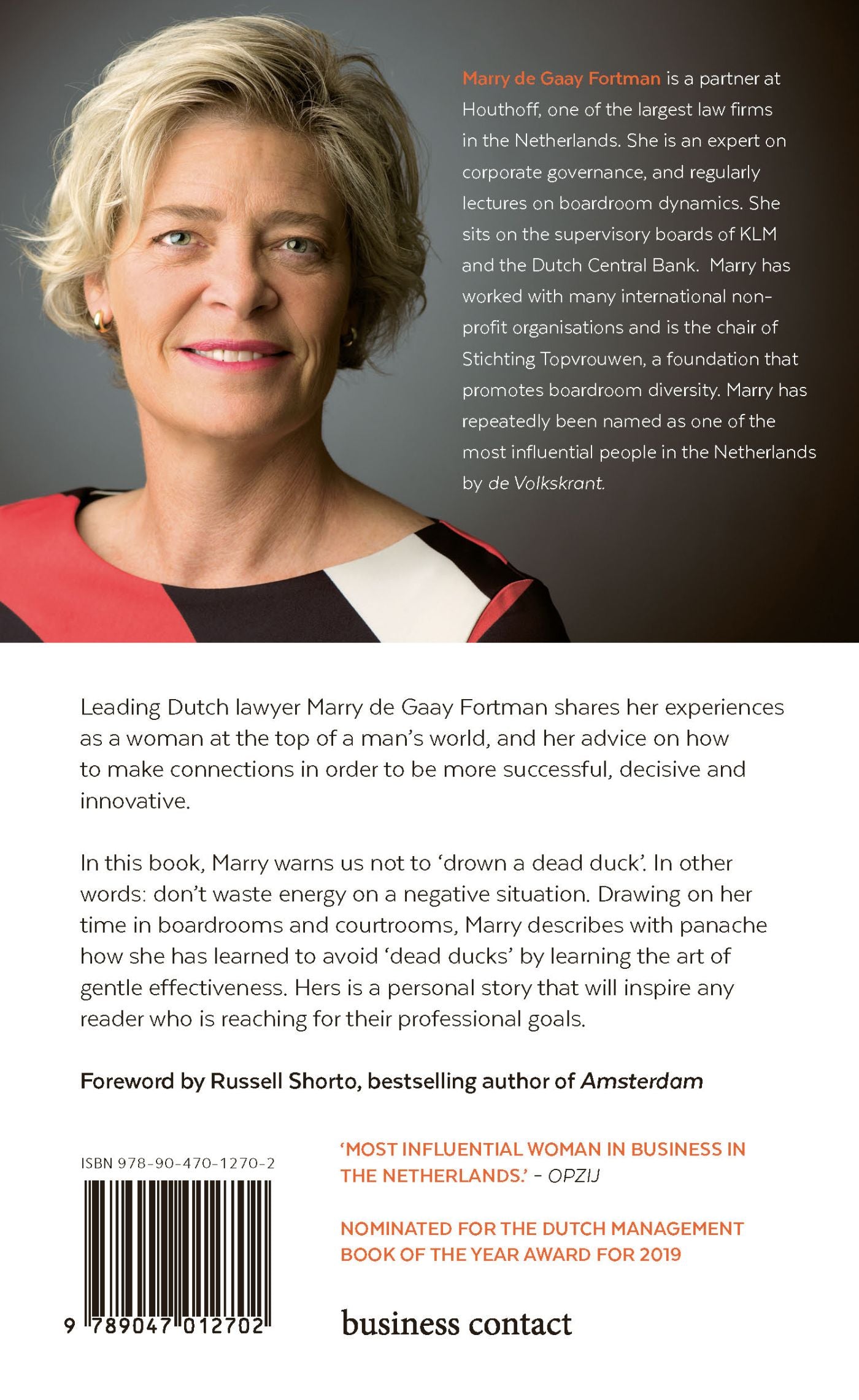 Leading Dutch lawyer Marry de Gaay Fortman shares in ‘Don’t drown a dead duck’ her experiences as a woman at the top of a man’s world, and her advice on how to make connections in order to be more successful, decisive and innovative.