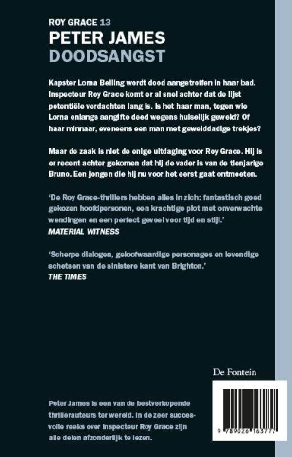 'Doodsangst’( ‘Need You Dead’) is deel 13 in de Roy Grace-serie van Peter James waarvan alle delen afzonderlijk te lezen zijn.