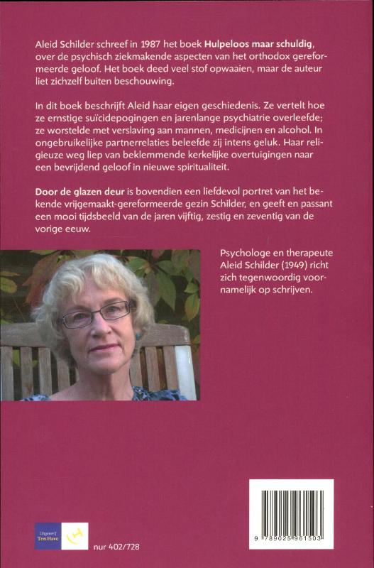 Aleid Schilder schreef in 1987 het boek Hulpeloos maar schuldig, over de psychisch ziekmakende aspecten van het gereformeerde geloof. Het boek deed veel stof opwaaien, maar de auteur liet zichzelf buiten beschouwing. Nu is het tijd voor Aleids eigen geschiedenis, die de lezer langs haar zucht naar mannen, drank en pillen voert, en de bevrijding van een beklemmende geloofsovertuiging. Aleid Schilder schetst en passant een mooi tijdsbeeld van de jaren vijftig, zestig en zeventig van de vorige eeuw. Tevens is dit boek een liefdevol portret van het roemruchte vrijgemaakt-gereformeerde gezin Schilder.