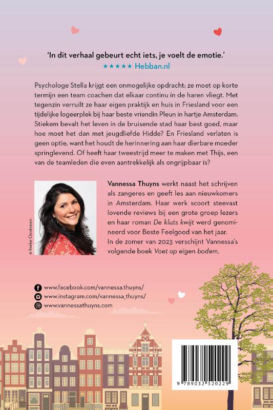 Stiekem bevalt het leven in de bruisende stad haar best goed, maar hoe moet het dan met jeugdliefde Hidde? En Friesland verlaten is geen optie, want het houdt de herinnering aan haar dierbare moeder springlevend. Of heeft haar tweestrijd meer te maken met Thijs, een van de teamleden die even aantrekkelijk als ongrijpbaar is?