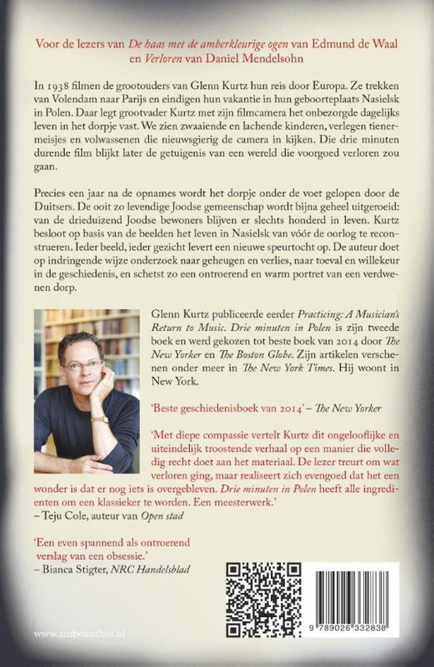 Precies een jaar na de opnames wordt het Poolse dorpje onder de voet gelopen door de Duitsers. De ooit zo levendige joodse gemeenschap wordt bijna uitgeroeid: van de drieduizend joodse bewoners blijven er slechts honderd in leven. Glenn Kurtz besloot op basis van de beelden het leven in Nasielsk van vóór de oorlog te reconstrueren. De auteur doet op indringende wijze onderzoek naar geheugen en verlies, naar toeval en willekeur in de geschiedenis. Voor de lezers van De haas met de amberkleurige ogen van Edmund de Waal en Verloren van Daniel Mendelsohn.