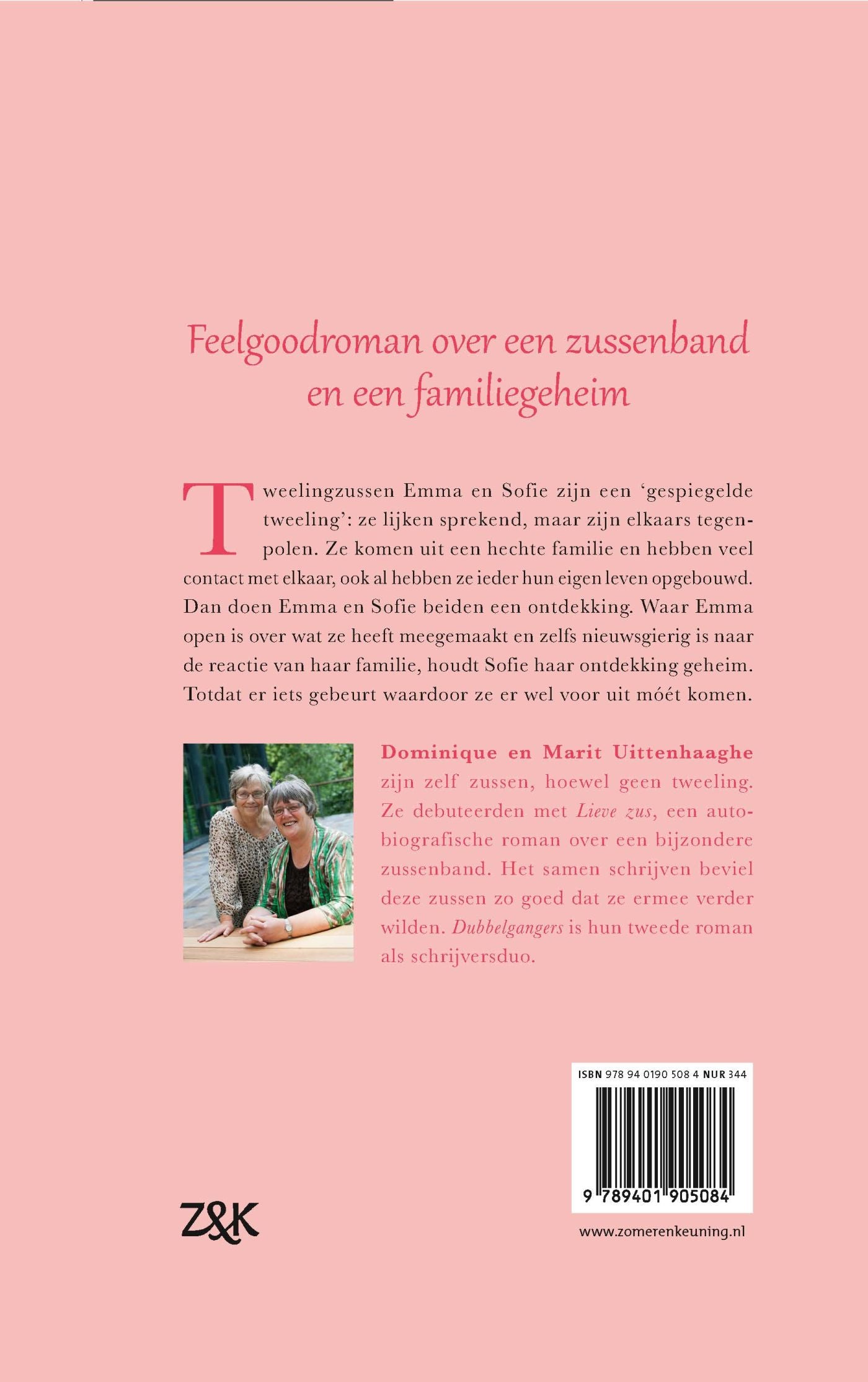 De dubbelgangers in deze feelgoodroman van Dominique en Marit Uittenhaaghe zijn tweelingzussen Emma en Sofie. Ze zijn twee handen op één buik, maar wel duidelijk een linker- en een rechterhand, met elk hun eigen wil. Dubbelgangers gaat over hun bijzondere zussenband, een familiegeheim, en alles wat er nog meer in een hechte familie gebeurt in de loop van ongeveer een jaar tijd. Dubbelgangers is een herkenbare roman voor iedereen die net als de zussen Dominique en Marit Uittenhaaghe niet zonder zijn familie kan, maar soms ook niet mét.