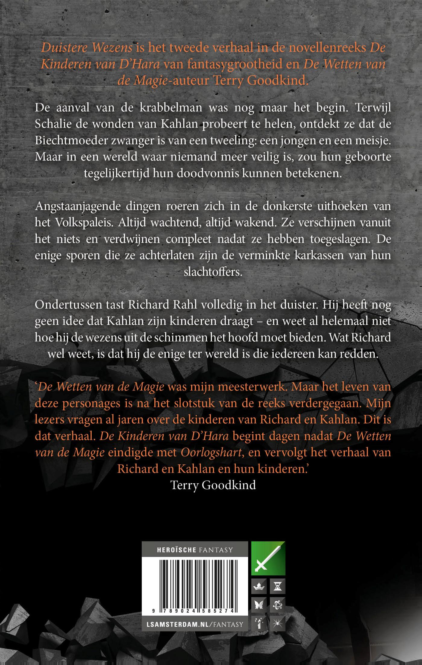 Duistere Wezens is het tweede verhaal in de novellenreeks De Kinderen van D’Hara van De Wetten van de Magie-auteur Terry Goodkind.