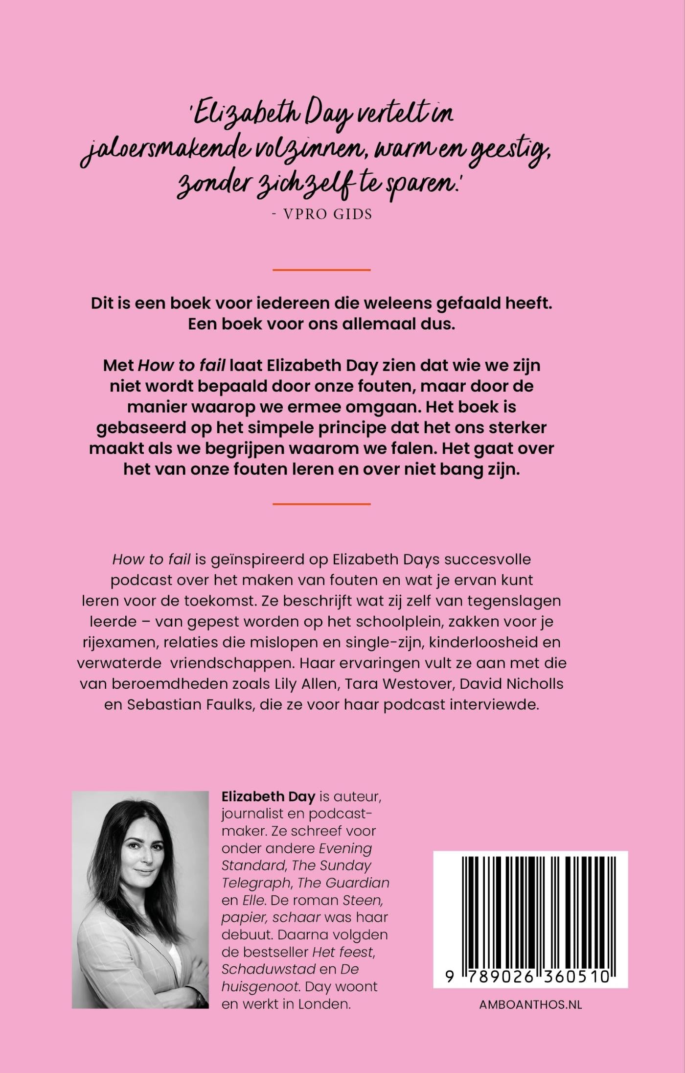 Met How to fail laat Elizabeth Day zien dat wie we zijn niet wordt bepaald door onze fouten, maar door de manier waarop we ermee omgaan. Het boek is gebaseerd op het simpele principe dat het ons sterker maakt als we begrijpen waarom we falen. Het gaat over het van onze fouten leren en over niet bang zijn.