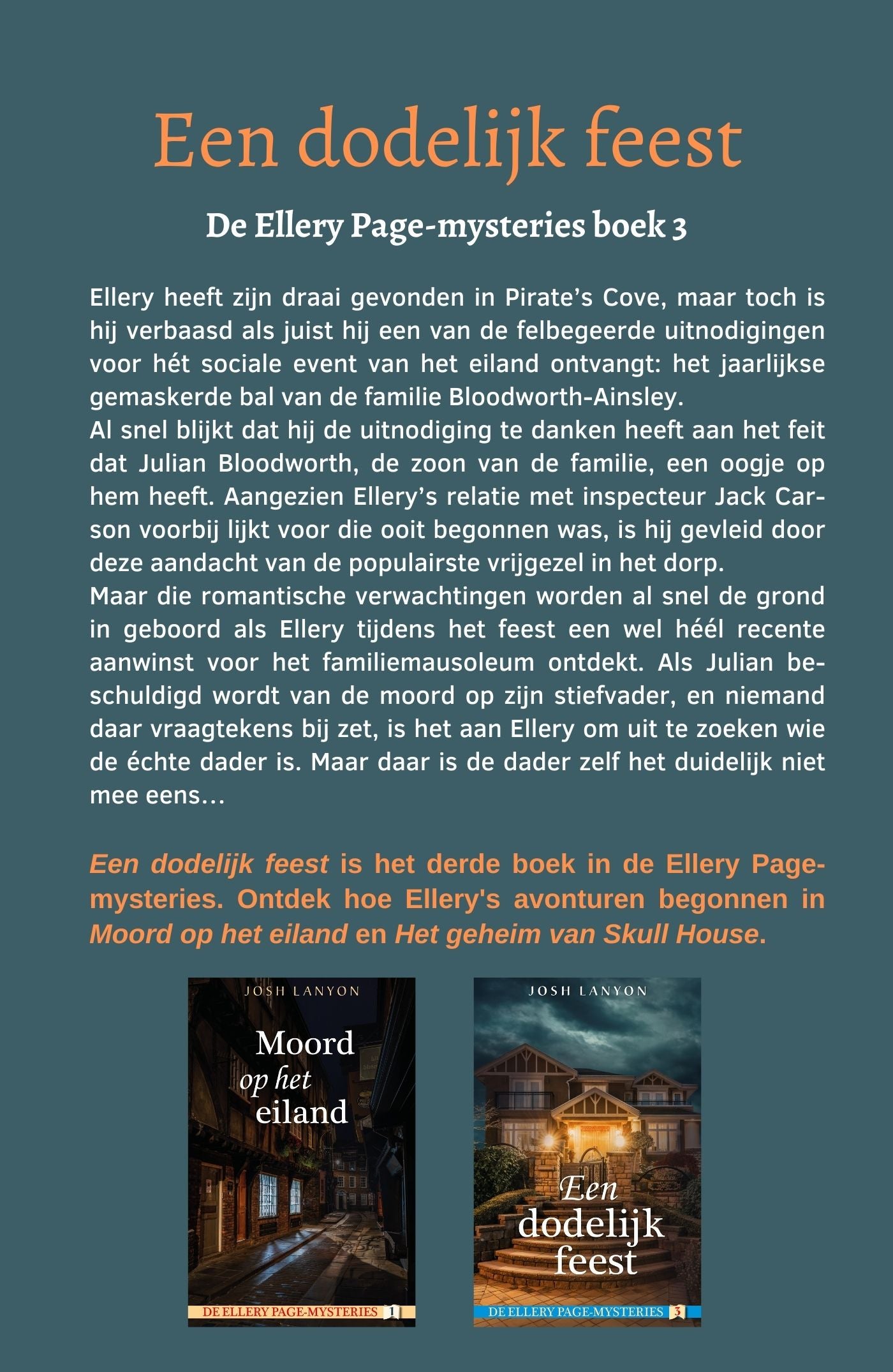 Aangezien Ellery’s relatie met inspecteur Jack Carson voorbij lijkt voor die ooit begonnen was, is hij gevleid door deze aandacht van de populairste vrijgezel in het dorp. Maar die romantische verwachtingen worden al snel de grond in geboord als Ellery tijdens het feest een wel héél recente aanwinst voor het familiemausoleum ontdekt. Als Julian beschuldigd wordt van de moord op zijn stiefvader, en niemand daar vraagtekens bij zet, is het aan Ellery om uit te zoeken wie de échte dader is. Maar daar is de dader zelf het duidelijk niet mee eens…