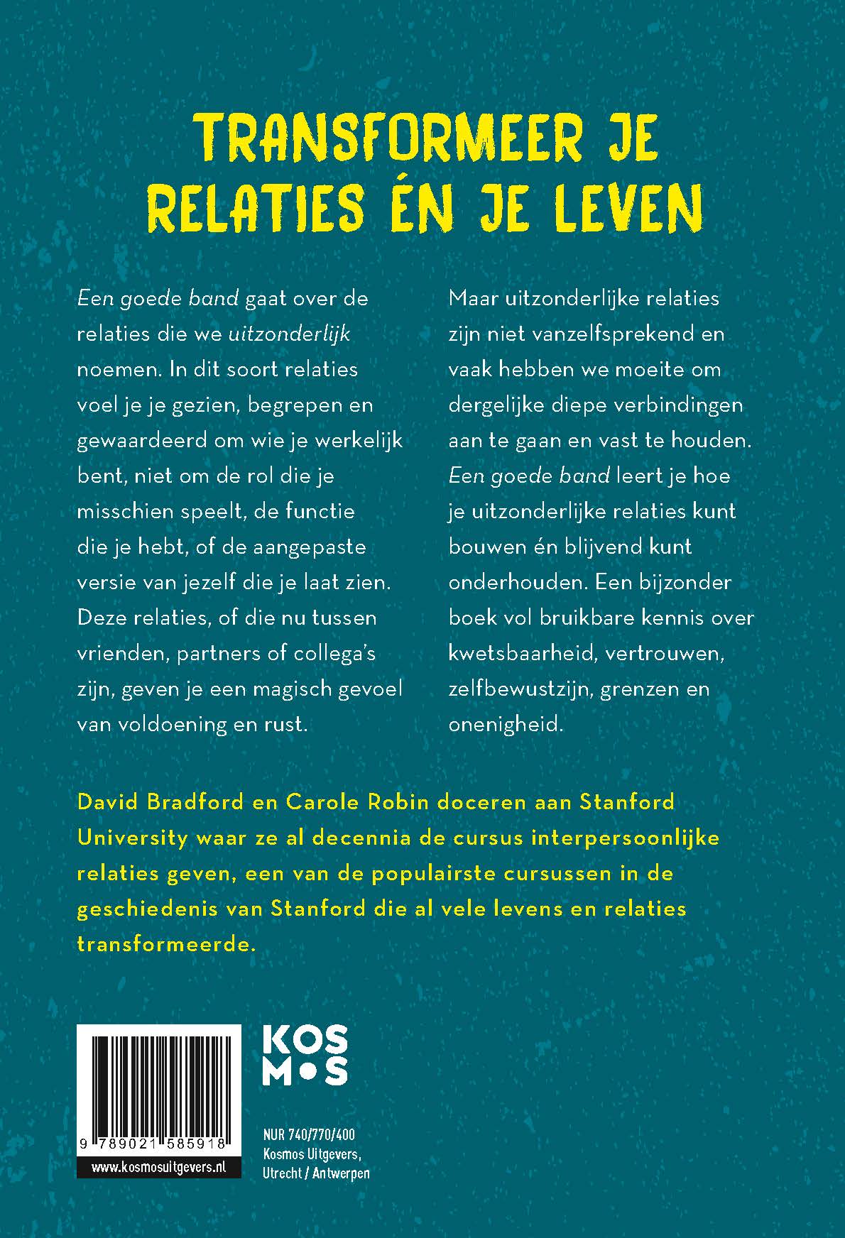 'Een goede band' beschrijft hoe we belangrijke relaties kunenn bouwen en ook gezond en sterk kunnen houden. Het boek is geschreven door de docenten David Bradford en Carole Robin, die samen een van de populairste cursussen in de geschiedenis van de Stanford University gaven: een cursus waar studenten al decennia lovend over zijn en die vele levens veranderde en voor veel studenten hun latere succes bepaalde.