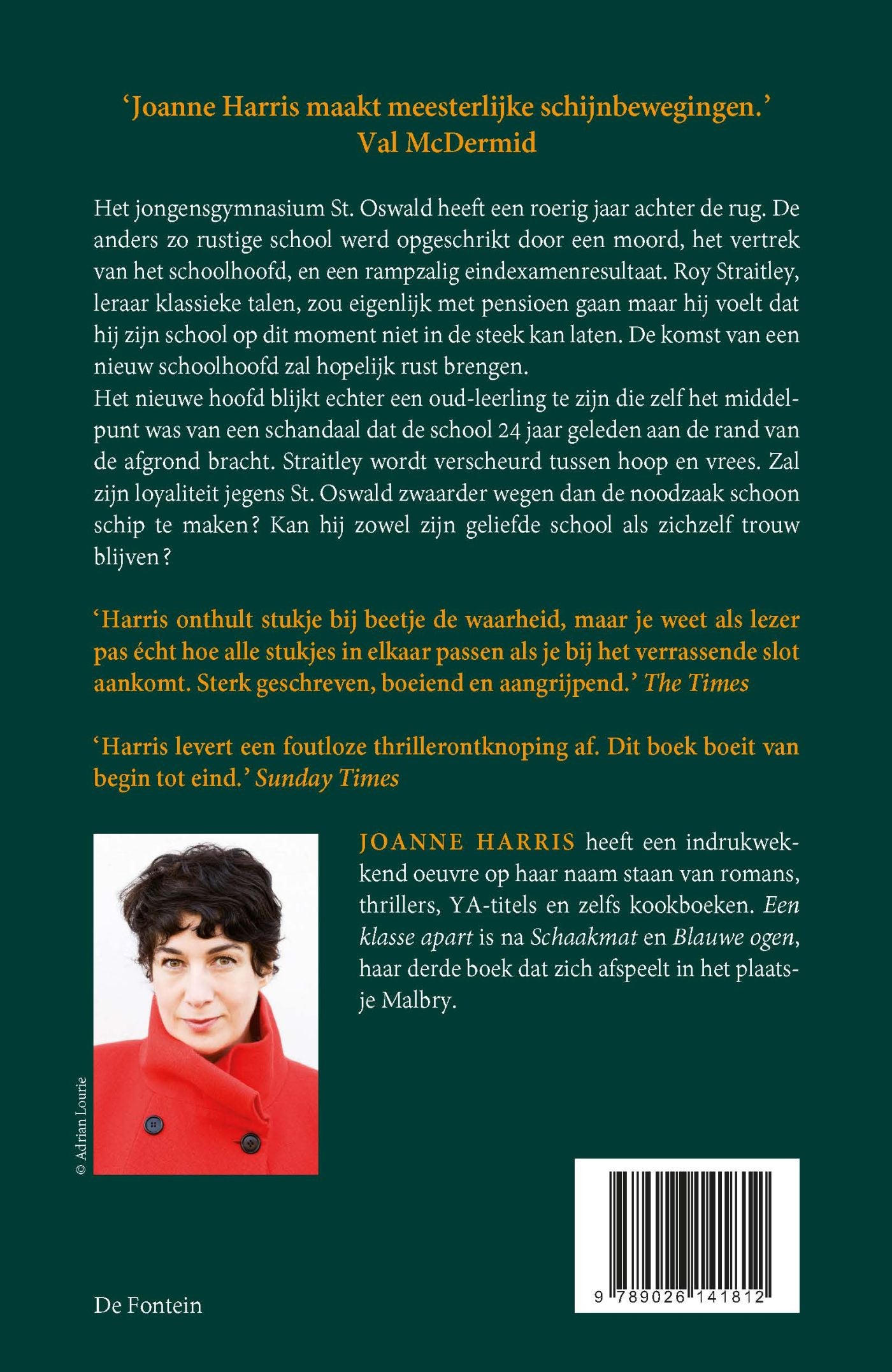 Joanne Harris heeft een indrukwekkend oeuvre op haar naam staan van romans, thrillers, YA-titels.’Een klasse apart’ is na ‘Schaakmat’ en ‘Blauwe ogen’, haar derde boek dat zich afspeelt in het plaatsje Malbry.