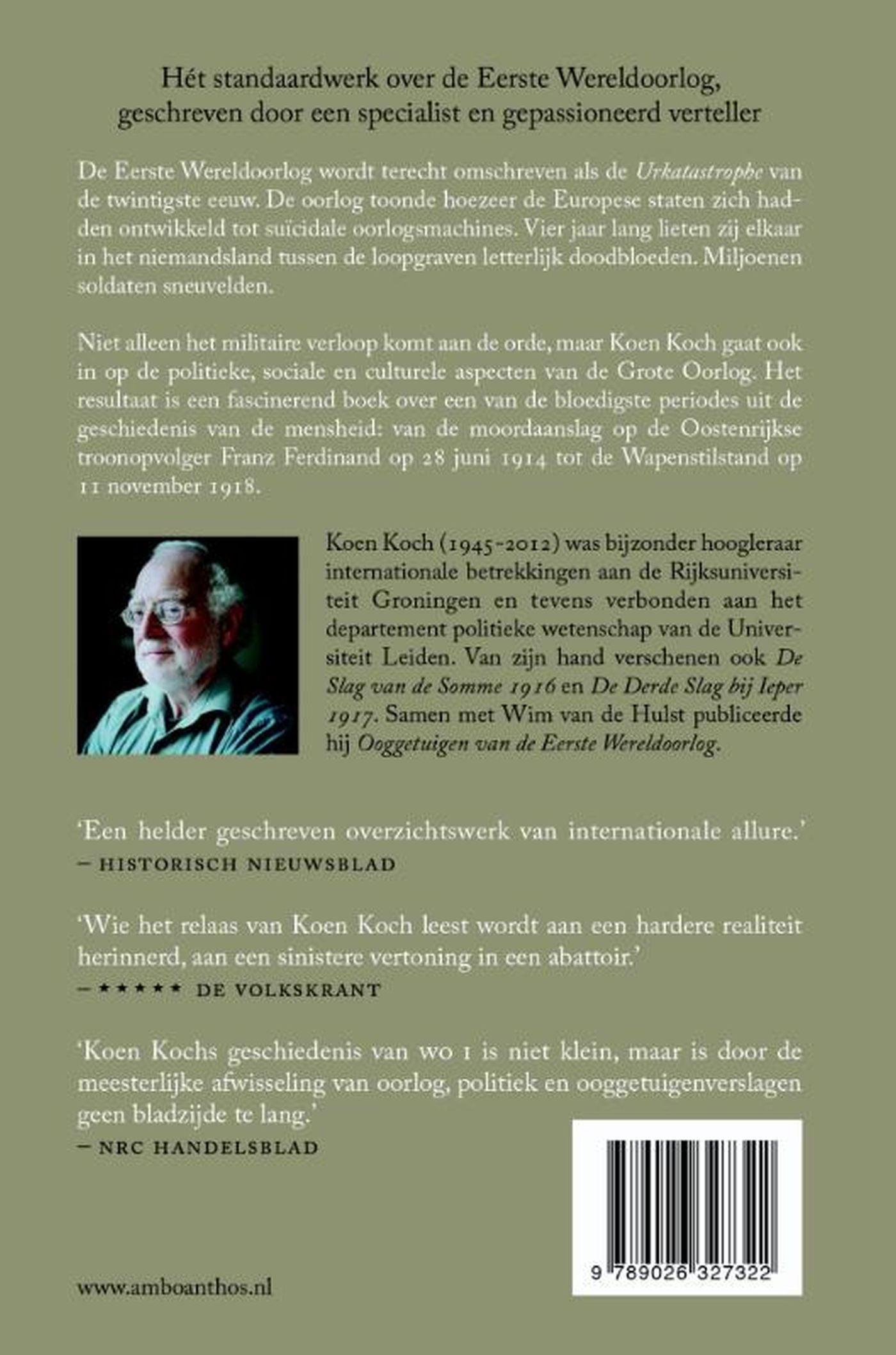 Niet alleen het militaire verloop komt aan de orde, maar Koen Koch gaat ook in op de politieke, sociale en culturele aspecten van de Grote Oorlog. Het resultaat is een fascinerend boek over een van de bloedigste periodes uit de geschiedenis van de mensheid: van de moordaanslag op de Oostenrijkse troonopvolger Franz Ferdinand op 28 juni 1914 tot de Wapenstilstand op 11 november 1918.