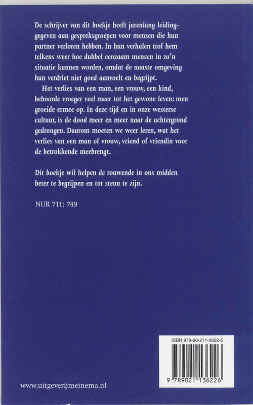 De schrijver van dit boekje heeft jarenlang leiding gegeven aan gespreksgroepen voor mensen die hun partner verloren hebben. In hun verhalen trof hem telkens weer hoe dubbel eenzaam mensen in zon situatie kunnen worden, omdat de naaste omgeving hun verdriet niet goed aanvoelt en begrijpt. Het verlies van een man, een vrouw, een kind, behoorde vroeger veel meer tot het gewone leven: men groeide ermee op. In deze tijd, en in onze westerse cultuur, is de dood meer en meer naar de achtergrond gedrongen. Daarom moeten we weer leren, wat het verlies van een man of vrouw, vriend of vriendin voor de betrokkene meebrengt.