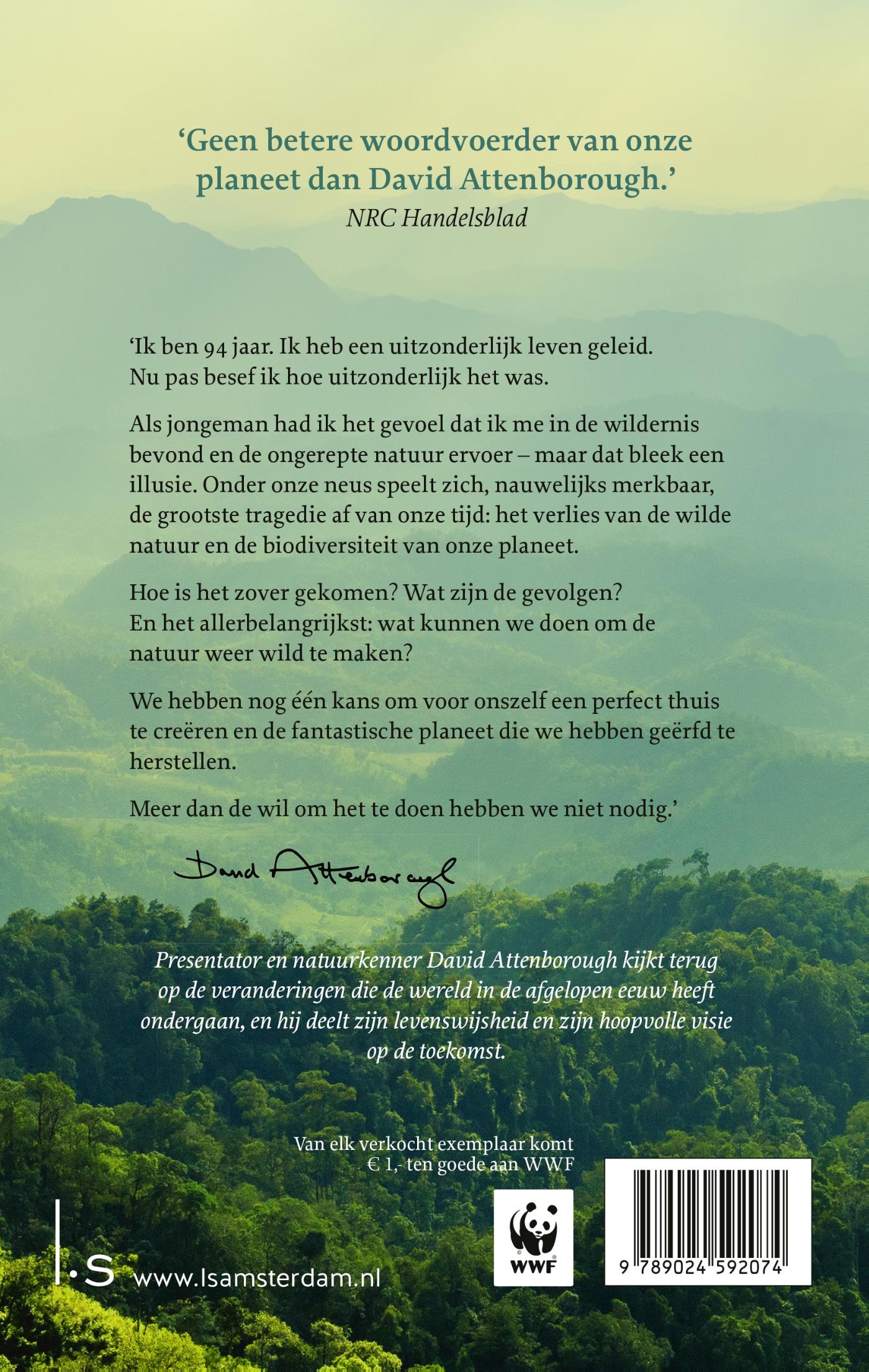 In dit autobiografische boek van Sir David Attenborough (Life, Planet Earth, Blue Planet) neemt de filmmaker je mee in zijn wereld – en de planeet van ons allemaal. Voor het eerst beschrijft hij op geheel eigen wijze de belangrijkste momenten in zijn leven als bioloog. Hoe hij oog in oog stond met wilde dieren en zijn leven wijdde aan het vastleggen van de natuur in al haar schoonheid en diversiteit. Ook vertelt Attenborough over de verwoestende veranderingen die hij in al zijn jaren met eigen ogen heeft gezien.