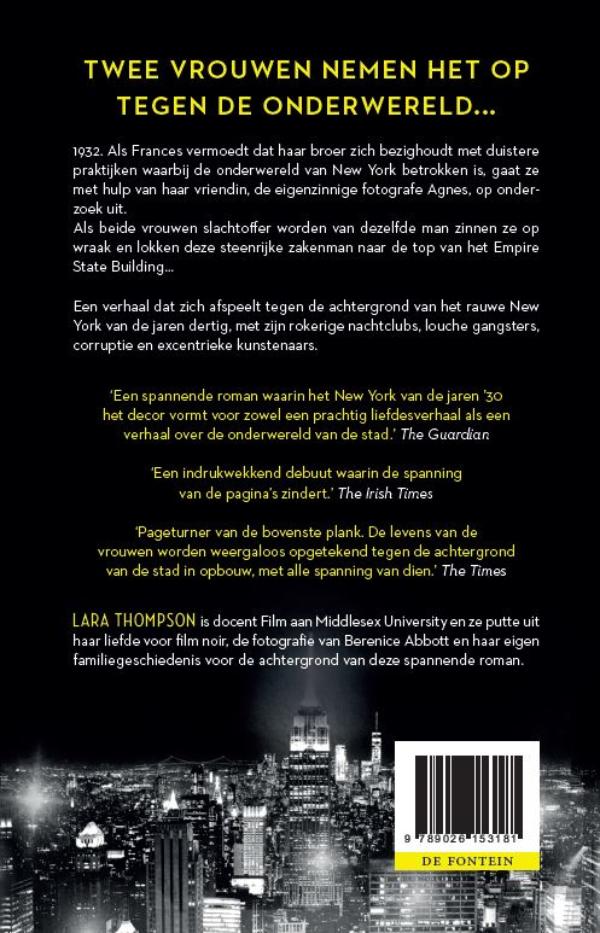 New York, 1932. Wanneer Frances vermoedt dat haar broer zich bezighoudt met schimmige zaken waarbij de onderwereld én de bovenwereld van New York betrokken zijn, gaat ze met hulp van haar vriendin, de eigenzinnige fotografe Agnes, op onderzoek uit.