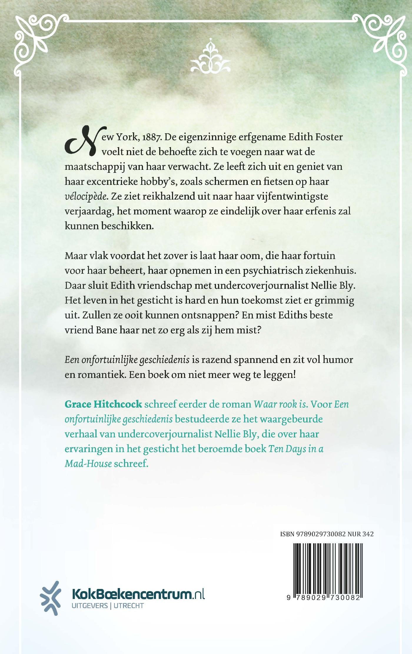 ‘Een onfortuinlijke geschiedenis’ van Grace Hitchcock gunt de lezer een kijkje achter de gesloten deuren van een psychiatrische instelling, waar de kerngezonde Edyth Foster en de undercover journaliste Nellie Bly naar een manier zoeken om te kunnen ontsnappen.