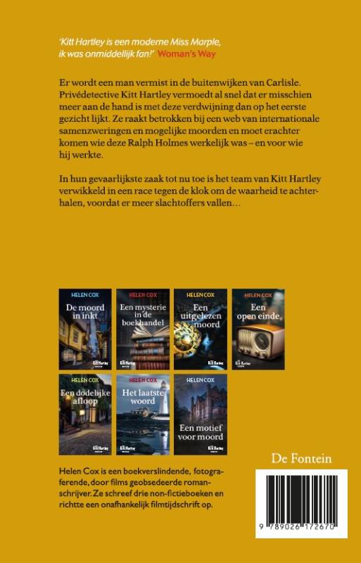 EEN ONGESCHREVEN REGEL is deel 8 in de Kitt Hartley-serie van Helen Cox. Een man wordt vermist in de buitenwijken van Carlisle. Kitt Hartley vermoedt al snel dat er misschien meer aan de hand is met deze verdwijning dan op het eerste gezicht lijkt. Ze wordt betrokken bij een web van internationale samenzweringen en mogelijke moorden en moet erachter komen wie Ralph Holmes werkelijk was - en voor wie hij werkte. In hun gevaarlijkste zaak tot nu toe is het team van Kitt verwikkeld in een race tegen de klok om de waarheid te achterhalen, voordat er meer slachtoffers vallen…