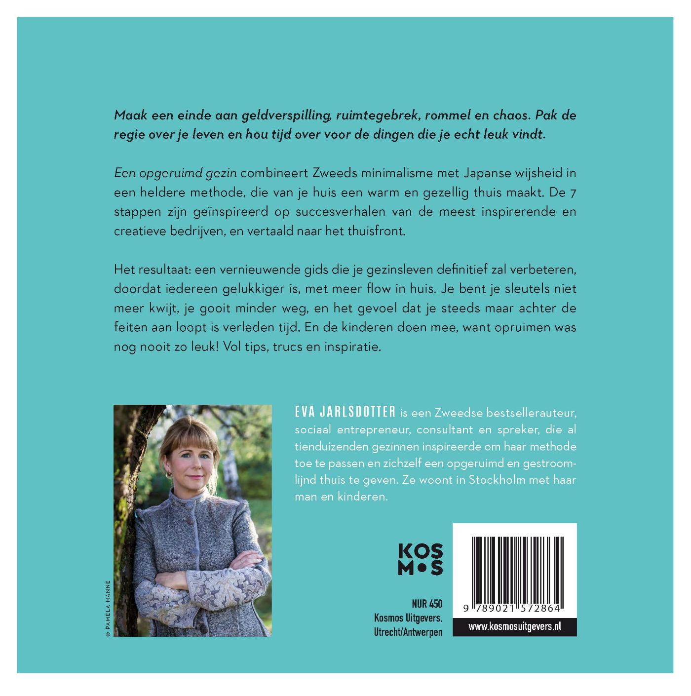In ‘Een opgeruimd gezin’ geeft Eva Jarlsdotter handige tips en trucs voor als je alle rommel in huis zat bent. Om zo thuis met het gezin, zonder rommel en chaos, optimaal te functioneren. Ze helpt je om je huis om te toveren tot een warm en gezellig thuis, vrij van frustraties en vol rust. Iedereen is gelukkiger met meer flow in huis.