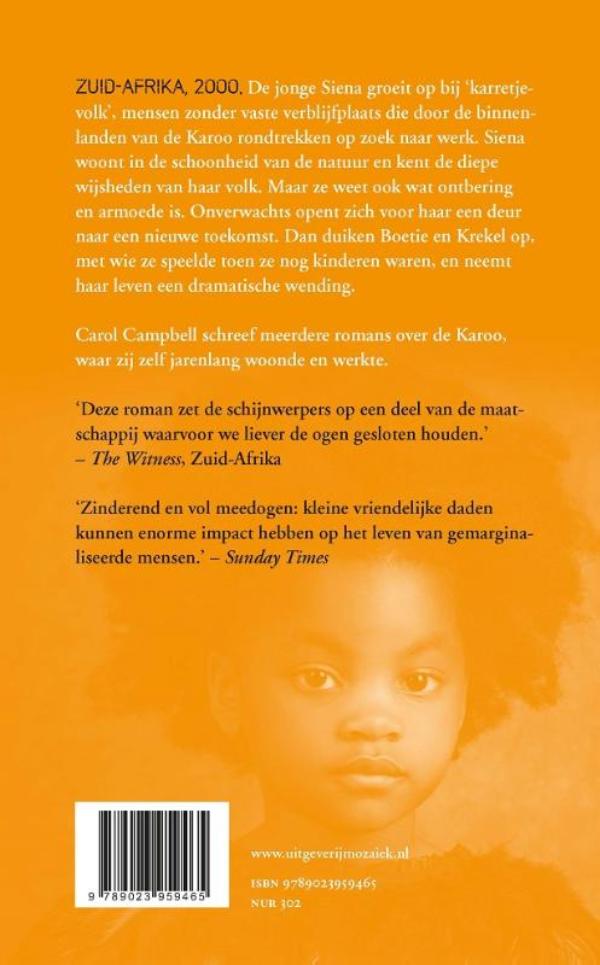 Zuid-Afrika, 2000. De jonge Siena groeit op bij de ‘karretjiemense’, die rondtrekken door de binnenlanden van de Karoo, op zoek naar werk. Ze woont in de schoonheid van de natuur en kent de diepe wijsheden van haar volk. Maar ze weet ook wat ontbering en armoede is. Onverwachts opent zich een deur naar een nieuwe toekomst – totdat haar vroegere speelkameraadjes Boetie en Kriekie opduiken en ze tot een dramatische daad gedwongen wordt.
