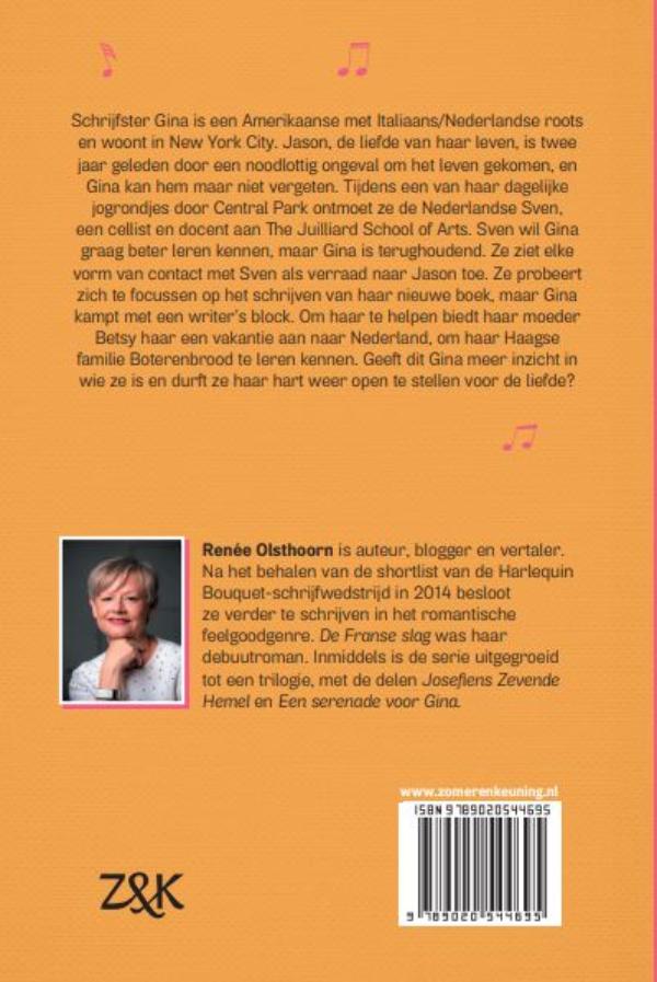 ‘Een serenade voor Gina’ is het laatste deel van de grappige en meeslepende Happy in de Hofstad-serie van Renée Olsthoorn. Eerder verschenen in de serie ‘De Franse Slag’ en ‘Josefiens zevende hemel’ over de andere leden van de Boterenbrood-familie.