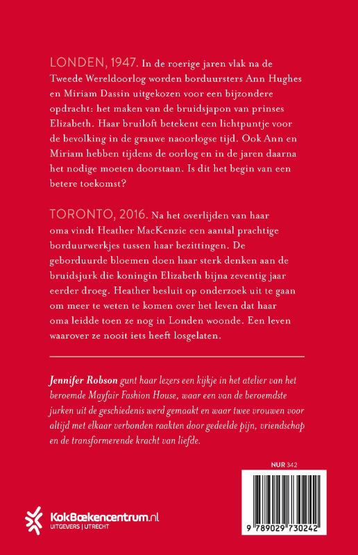 In de roerige tijden vlak na de Tweede Wereldoorlog worden borduursters Ann Hughes en Miriam Dassin uitgekozen voor een bijzondere opdracht: het maken van de bruidsjapon van prinses Elizabeth. Voor hen een kans om toe te werken naar een betere toekomst. Meer dan een halve eeuw later stuit Anns kleindochter op een paar geborduurde bloemen in de spullen van haar overleden grootmoeder. Als ze ontdekt dat het dezelfde bloemen zijn als die op de bruidsjapon van koningin Elizabeth, gaat ze op onderzoek uit.