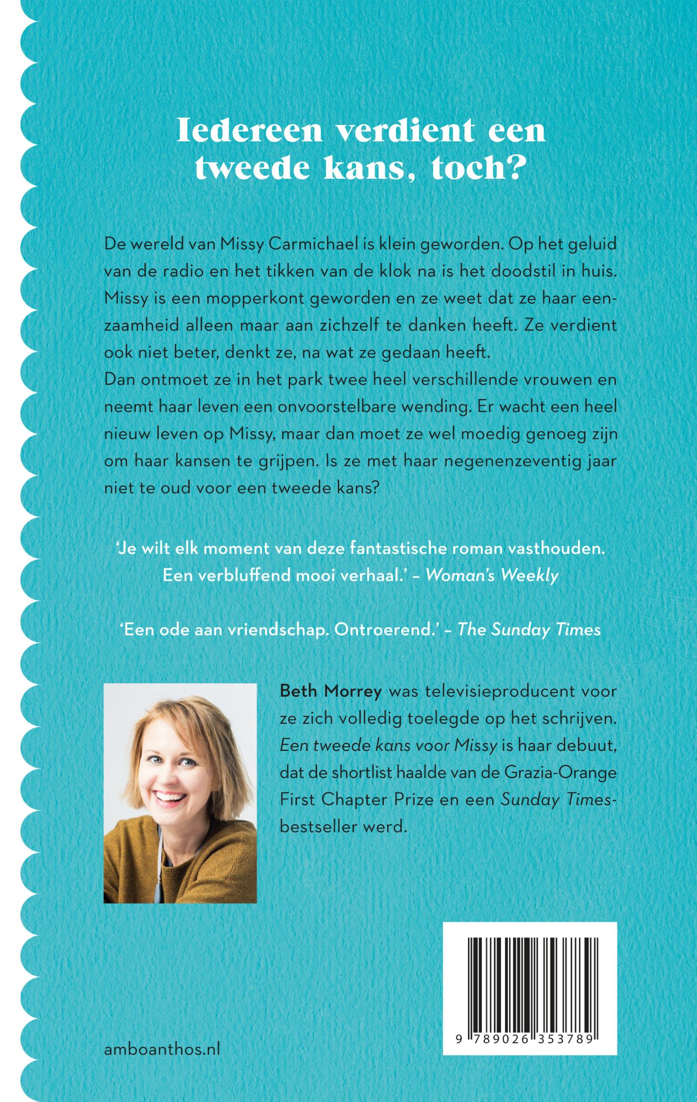 Een tweede kans voor Missy is een roman die doorspekt is met liefde, verlies en eenzaamheid, maar vooral met hoop. Het is een aangrijpend ‘coming of old age’-verhaal waarin gewone dagen bijzonder worden door de kracht van vriendschap, saamhorigheid en vergiffenis voor jezelf, op welke leeftijd dan ook. Een tweede kans voor Missy van Beth Morrey is het hoopvolste debuut van 2021!