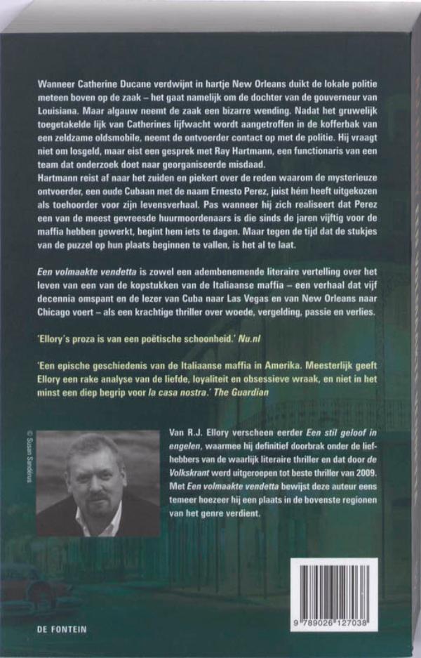 Van R.J. Ellory verscheen eerder Een stil geloof in engelen, waarmee hij definitief doorbrak onder liefhebbers van de waarlijk literaire thriller en dat door de Volkskrant werd uitgeroepen tot beste thriller van 2009. Met Een volmaakte vendetta bewijst deze auteur eens temeer hoezeer hij een plaats in de bovenste regionen van het genre verdient.