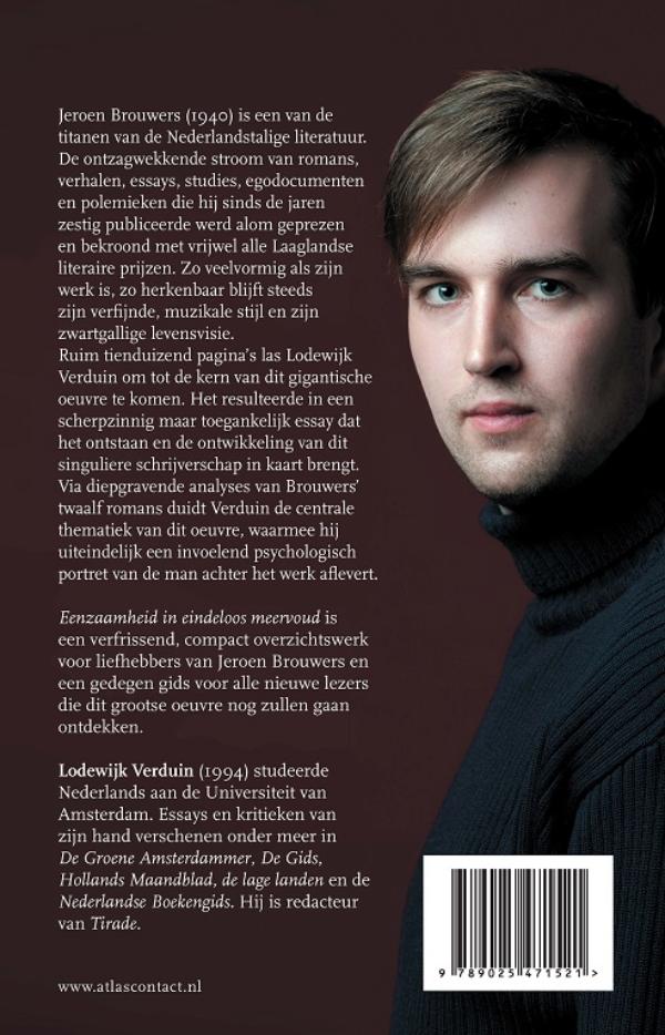 ‘Eenzaamheid in eindeloos meervoud’ van Lodewijk Verduin is een verfrissend, compact overzichtswerk voor liefhebbers van Jeroen Brouwers en een gedegen gids voor alle nieuwe lezers die dit grootse oeuvre nog zullen gaan ontdekken.