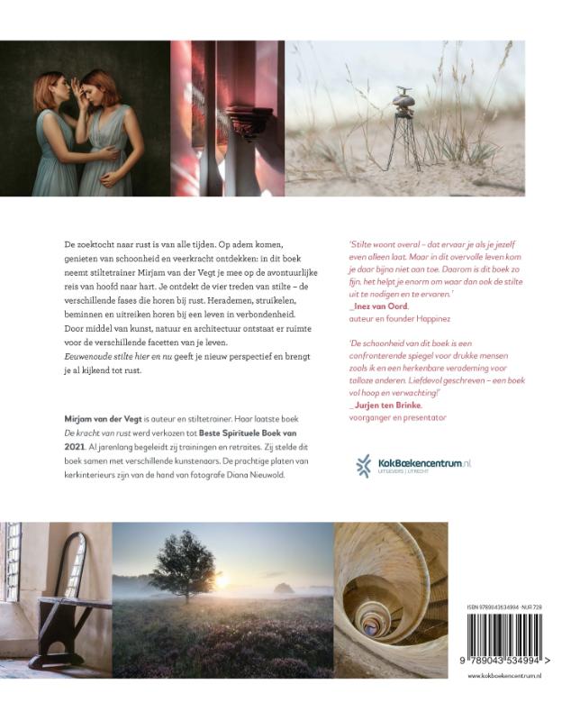 ‘Eeuwenoude stilte hier en nu’ is een prachtig geïllustreerd salontafelboek van Mirjam van der Vegt over de zoektocht naar rust. Van der Vegt neemt je mee op een reis van hoofd naar hart, aan de hand van de vier treden van de stilte. Herademen, struikelen, beminnen en uitreiken: rust vinden gaat in verschillende fases. Naast prachtige teksten en quotes staan er veel beelden in het boek die je uitnodigen om op adem te komen. Deze beelden zijn gemaakt door verschillende fotografen en kunstenaars, zoals Sjaak Verboom, Jopie Huisman, Lianne Polinder en Martijn Duifhuizen. In hun kunstwerken en foto’s van natuur en architectuur staat verstilling centraal. Zo kom je al kijkend tot rust.