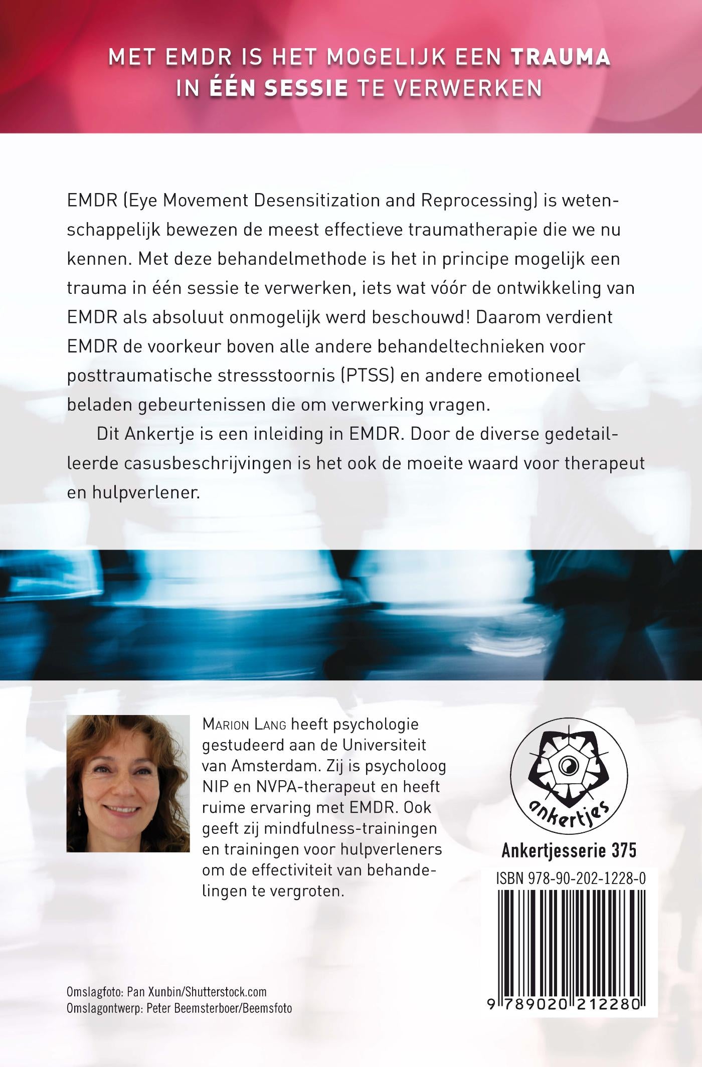 In EMDR, de meest effectieve traumatherapie omschrijft Marion Lang alle aspecten van deze verbluffend effectieve, kortdurende methode om traumatische gebeurtenissen als een ongeluk, overval of verlies te verwerken. EMDR (Eye Movement Desensitization Reprocessing) is wetenschappelijk bewezen en wordt ook toegepast bij angstklachten of een negatief zelfbeeld. Door tijdens het denken aan de nare gebeurtenis afleiding te bieden in de vorm van handbewegingen of geluidsklikjes via een headset, neemt de intensiteit van de traumatische ervaring enorm af. Eén sessie EMDR is vaak al voldoende om vrij te worden van de belastende emotie.