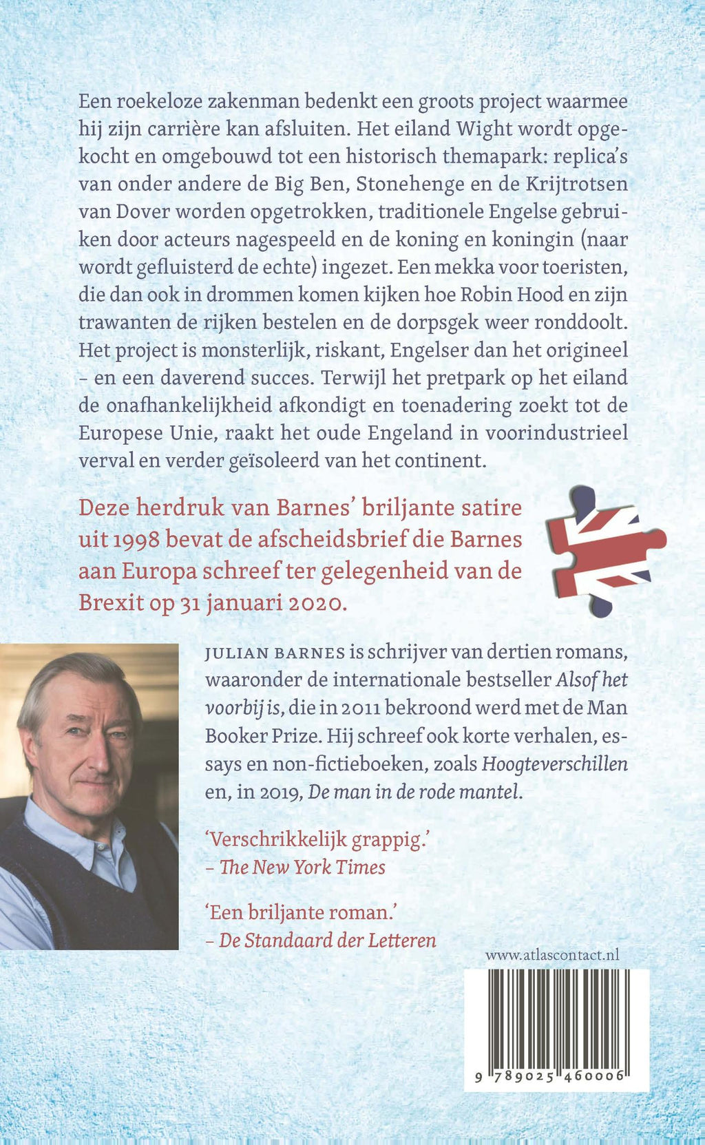 Deze herdruk van Barnes’ briljante satire uit 1998 bevat de afscheidsbrief die Barnes aan Europa schreef ter gelegenheid van de Brexit op 31 januari 2020.