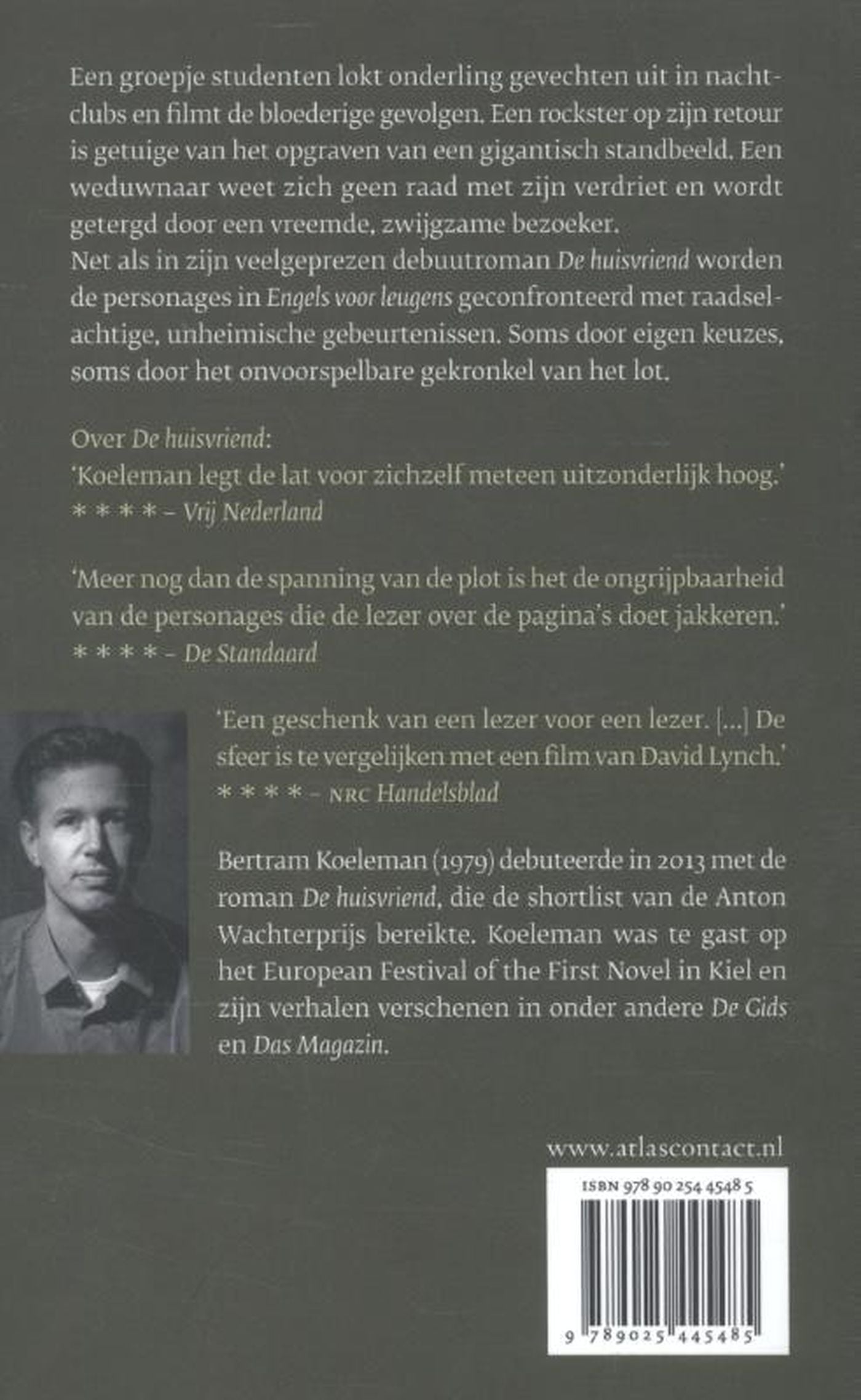 Net als in zijn veelgeprezen debuutroman 'De huisvriend' worden de personages in 'Engels voor leugens' geconfronteerd met raadselachtige, unheimische gebeurtenissen. Soms door eigen keuzes, soms door het onvoorspelbare gekronkel van het lot.