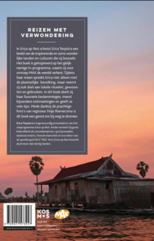 Erica Terpstra schetst in haar boek Erica op reis een beeld van de inspirerende en soms wonderlijke landen en culturen die ze bezoekt. Het is gebaseerd op haar gelijknamige tv-programma, waarin ze voor omroep Max de wereld verkent. Tijdens haar reizen spreekt Erica Terpstra niet alleen met de lokale bevolking, maar neemt ze ook deel aan lokale rituelen, gewoonten en gebruiken. In dit boek deelt ze haar favoriete bestemmingen, meest bijzondere ontmoetingen en geeft ze vele tips. Mede dankzij de foto's van regisseur Feije Riemersma is dit boek een genot om bij weg te dromen.
