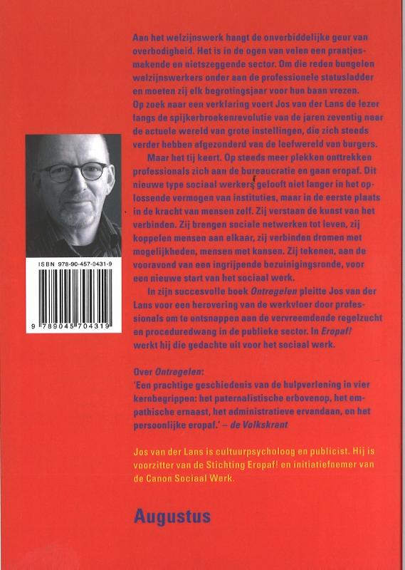 Aan welzijnswerk hangt sinds jaar en dag de onverbiddelijke geur van overbodigheid. Het is in de ogen van velen een praatjesmakende en nietszeggende sector. Om die reden bungelen welzijnswerkers onder aan de professionele statusladder en moeten zij elk begrotingsjaar voor hun baan vrezen. Op zoek naar een verklaring hiervoor voert Jos van der Lans de lezer langs de spijkerbroekenrevolutie van de jaren zeventig naar de actuele wereld van grote instellingen, die zich steeds verder hebben afgezonderd van de leefwereld van burgers. Maar hij ziet het tij keren. Op steeds meer plekken onttrekken professionals zich aan de bureaucratie en gaan eropaf. Dit nieuwe type sociaal werkers gelooft niet langer in het oplossend vermogenvan instituties, maar in de eerste plaats in de kracht van mensen zelf. In zijn succesvolle boek Ontregelen pleitte Jos van der Lans voor een herovering van de werkvloer door professionals, om te ontsnappen aan de vervreemdende regelzucht en proceduredwang in de publieke sector. In erop af werkt hij die gedachte uit voor het sociaal werk.