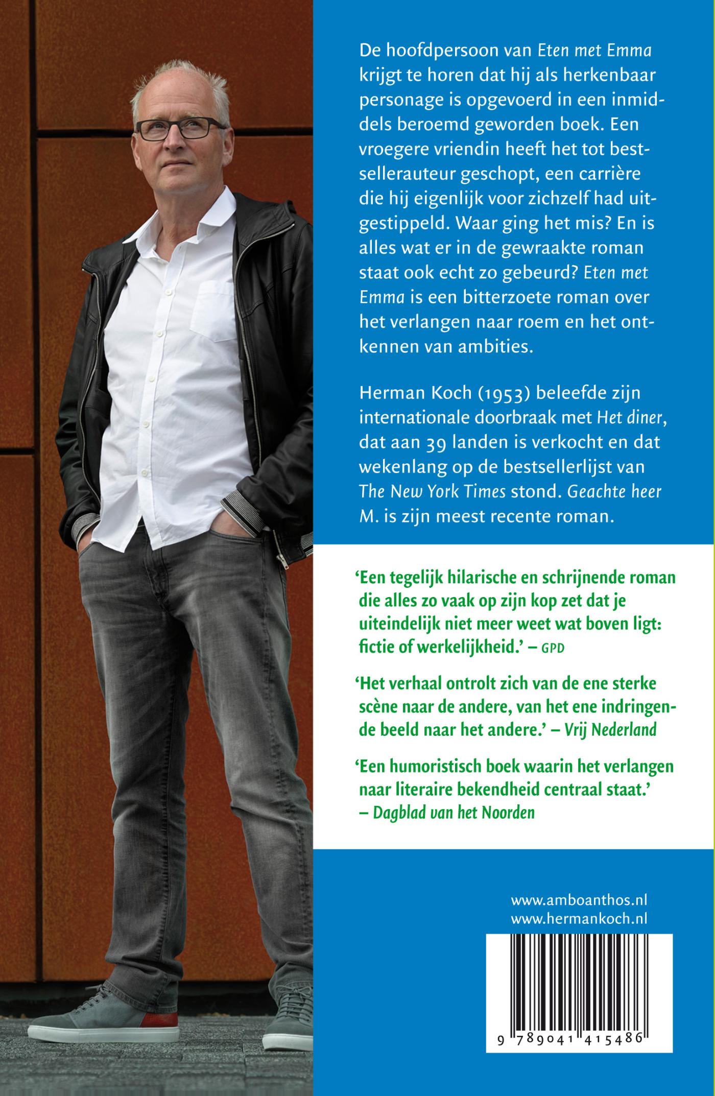 De hoofdpersoon van Eten met Emma krijgt te horen dat hij als herkenbaar personage is opgevoerd in een inmiddels beroemd geworden boek. Een vroegere vriendin heeft het tot bestsellerauteur geschopt, een carrière die hij eigenlijk voor zichzelf had uitgestippeld. Waar ging het mis? En is alles wat er in de gewraakte roman staat ook echt zo gebeurd? Eten met Emma is een bitterzoete roman over het verlangen naar roem en het ontkennen van ambities.