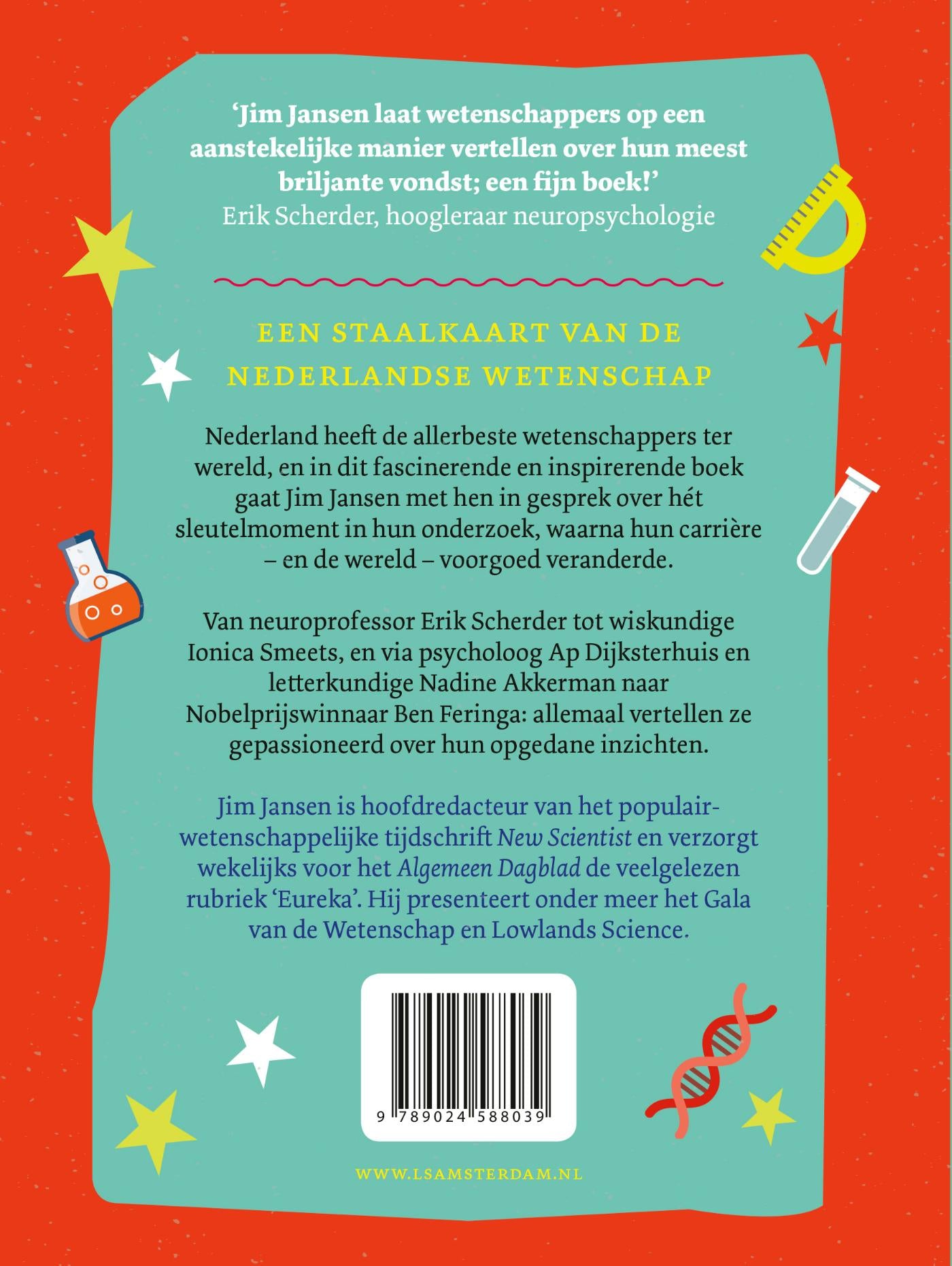Nederland heeft de allerbeste wetenschappers ter wereld, en in dit fascinerende en inspirerende boek gaat Jim Jansen (hoofdredacteur van het populairwetenschappelijke tijdschrift New Scientist) met hen in gesprek over hét sleutelmoment in hun onderzoek, waarna hun carrière – en de wereld – voorgoed veranderde.