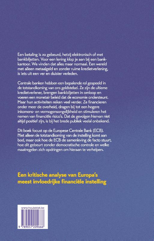 Dit boek focust op de Europese Centrale Bank (ECB). Niet alleen de totstandkoming van de instelling komt aan bod, maar ook hoe de ECB de samenleving de facto stuurt, hoe dit gebeurt zonder democratische controle en welke maatregelen zich opdringen om hieraan te verhelpen.