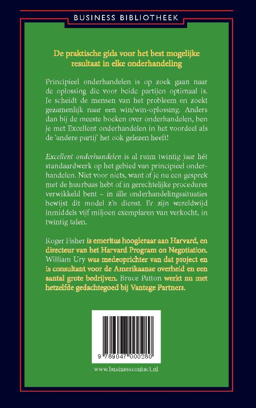 Principieel onderhandelen is op zoek gaan naar een uitkomst die voor beide partijen optimaal is. Je scheidt de mensen van het probleem en zoekt gezamenlijk naar een win-win-oplossing. Anders dan bij de meeste boeken over onderhandelen, ben je met ‘Getting to Yes’ in het voordeel als de ‘andere partij’ het ook gelezen heeft!