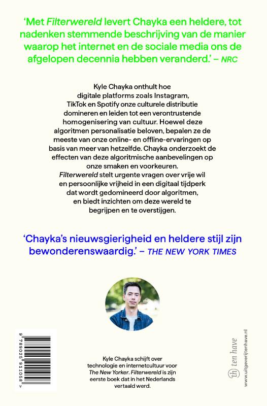 Met Filterworld levert Chayka een heldere, tot nadenken stemmende beschrijving van de manier waarop het internet en de sociale media ons de afgelopen decennia hebben veranderd. - NRC