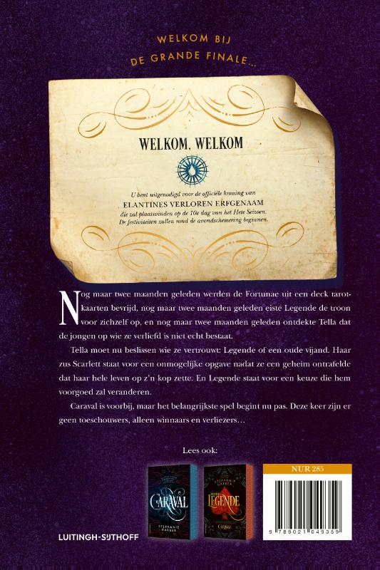 Finale is het meeslepende en betoverende slotdeel van Stephanie Garbers Caraval-serie. Deze romantasy houdt je aan je stoel gekluisterd, en is nu prachtig uitgevoerd met een bedrukt boekblok! Andere delen in deze serie zijn: Caraval (deel 1), Meester Legende (deel 2) en de Caraval-novelle Het spektakel.