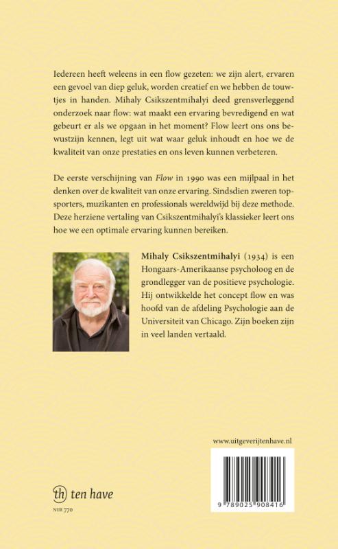 De psycholoog Mihaly Csikszentmihalyi deed grensverleggend onderzoek naar flow: wat maakt een ervaring bevredigend en wat gebeurt er als we opgaan in het moment. De eerste verschijning van Flow (1990) was een mijlpaal in het denken over de kwaliteit van onze ervaring. Sindsdien zweren topsporters, muzikanten en professionals wereldwijd bij deze methode. Door dit boek leren ze hun bewustzijn kennen, ontdekken ze wat waar geluk inhoudt en verbeteren ze de kwaliteit van hun prestaties en leven.