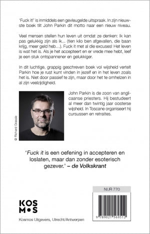 Het is inmiddels een gevleugelde uitspraak: ‘Fuck it!’ In dit nieuwste boek tilt John Parkin dit motto naar een nieuw niveau. Velen van ons stellen hun leven uit omdat ze denken: ik kan pas gelukkig zijn als ik ... (tien kilo ben afgevallen, die baan krijg, meer geld heb…). Fuck it met al die excuses! Het leven is wat het is en het is heel goed mogelijk om gewoon tevreden te zijn. In dit uitdagende, grappig geschreven boek vertelt John Parkin hoe. Een inspiratiebron voor persoonlijke ontwikkeling.