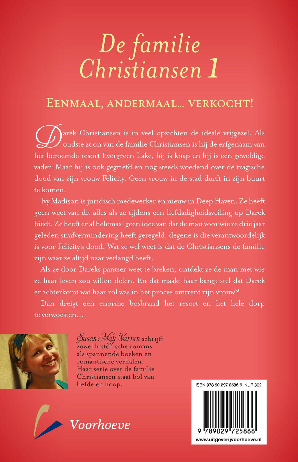 Eenmaal, andermaal… verkocht! ‘Geef mij een kans’ is het deel 1 in Susan May Warrens serie over de familie Christiansen. Darek Christiansen is in veel opzichten de ideale man. Als oudste zoon van de familie Christiansen is hij de erfgenaam van het historische resort Evergreen Lake, hij is knap en hij is een geweldige vader. Maar hij is ook gegriefd en nog steeds woedend over de tragische dood van zijn vrouw Felicity. Geen vrouw in de stad durft hem te benaderen. Ivy Madison, een juridische medewerker die nieuw is in Deep Haven, heeft geen idee van dit alles als ze op Darek biedt tijdens een liefdadigheidsveiling. En ook niet van het feit dat de man voor wie ze drie jaar geleden strafvermindering heeft geregeld, degene is die verantwoordelijk is voor Felicity’s dood.Susan May Warren schrijft zowel historische romans als spannende boeken en romantische verhalen. Deze serie over de familie Christiansen staat bol van liefde en hoop.