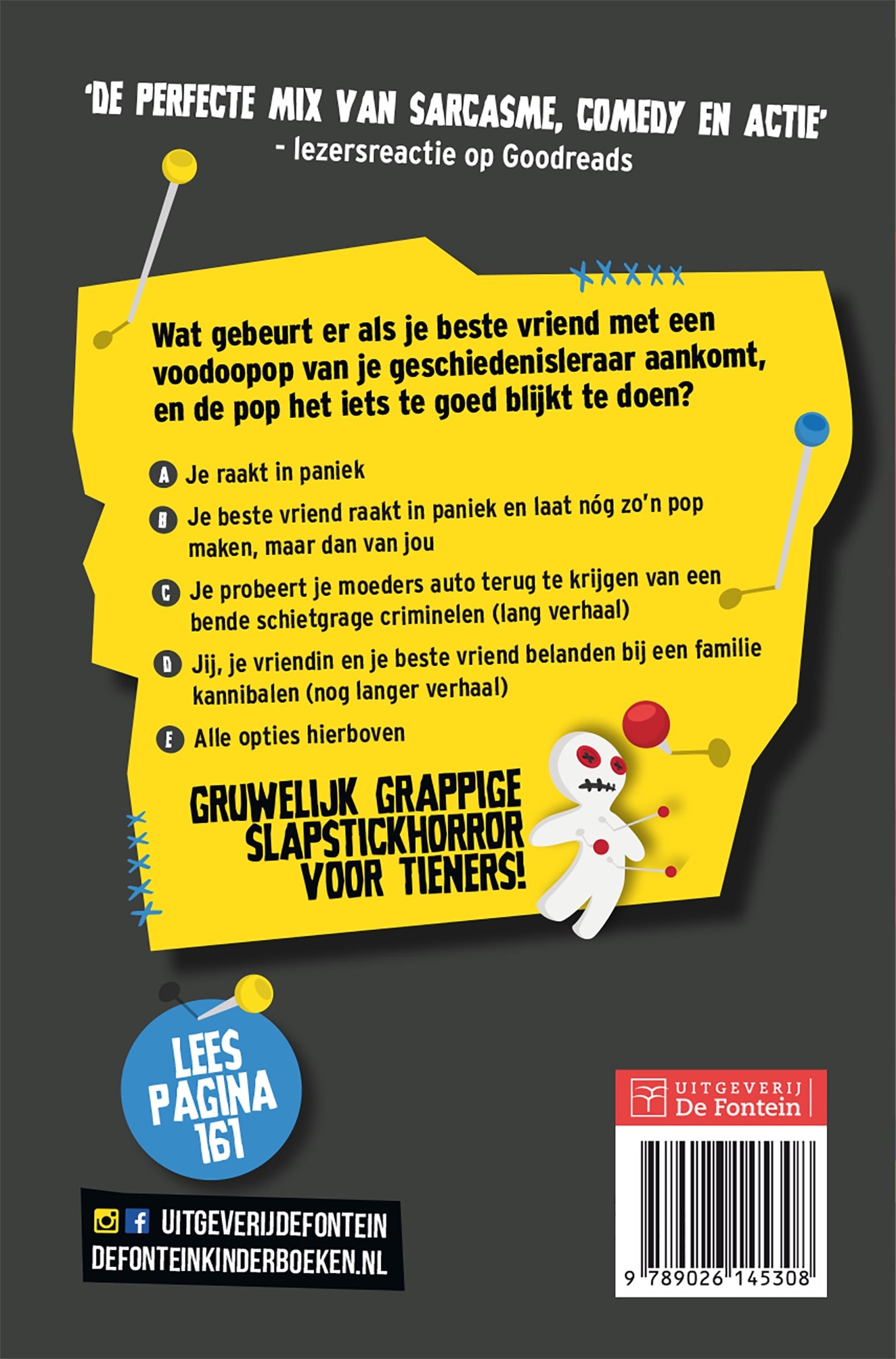 Geen beste dag voor voodoo is slapstickhorror voor tieners. Eindelijk hardop lachen om young adult! Vol gruwelijke grappen, vanaf 13 jaar.