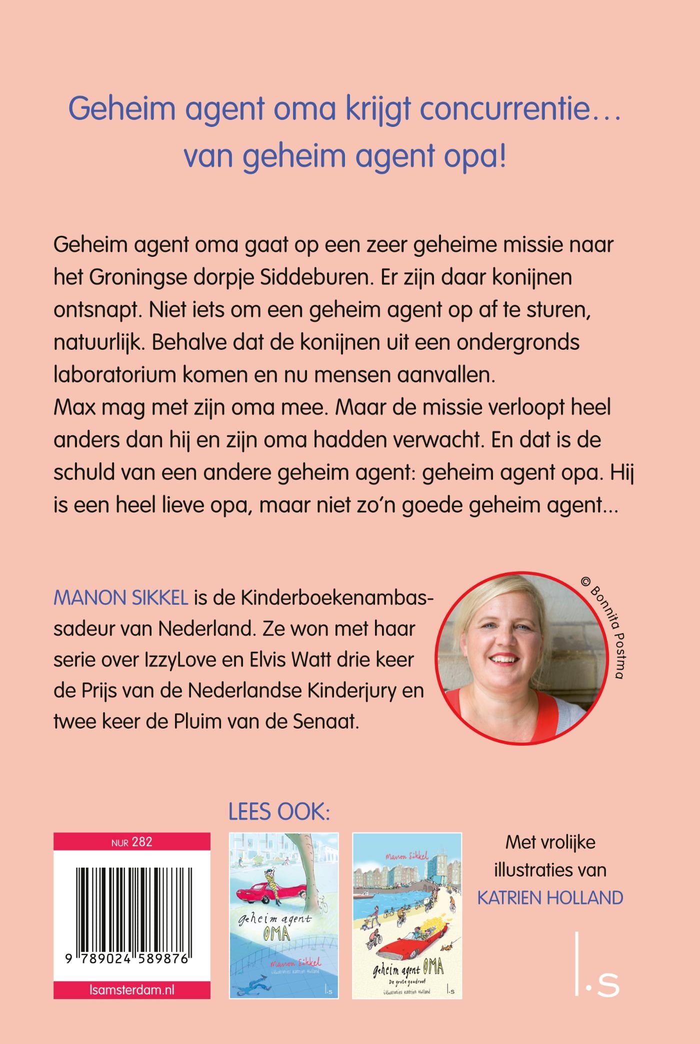 In Geheim agent opa, het derde deel in de succesvolle Geheim agent oma-serie van Kinderjury- en Pluim-winnares Manon Sikkel, krijgt de oma van Max competitie van… geheim agent opa! Eerder verschenen Geheim agent oma (deel 1) en Geheim agent oma – De grote goudroof (deel 2). De boeken, met vrolijke illustraties van Katrien Holland, kunnen los van elkaar gelezen worden.