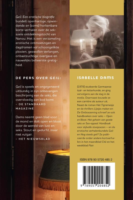 Geil. Een erotische biografie bundelt openhartige, opwindende en (soms) herkenbare korte verhalen over de seksuele ontdekkingstocht van Nanou. Het is een verzameling erotische ontmoetingen en dagdromen vol schoongelikte plooien, gezwollen verlangen, onbaatzuchtige overgave en nauwelijks beheerste gretigheid.
