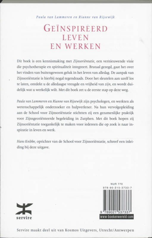 Dit boek is een kennismaking met Zijnsoriëntatie, een vernieuwende visie die psychotherapie en spiritualiteit integreert. Brutaal gezegd, gaat het over het vinden van buitengewoon geluk in het leven van alle dag. De aanpak van Zijnsoriëntatie is hierbij nogal tegendraads. Door het sleutelen aan uzelf los te laten, ontdekt u de alledaagse vreugde en vrijheid van zijn, en wordt duidelijk wat u werkelijk wilt. Met dit boek zet u de eerste stap op deze weg.