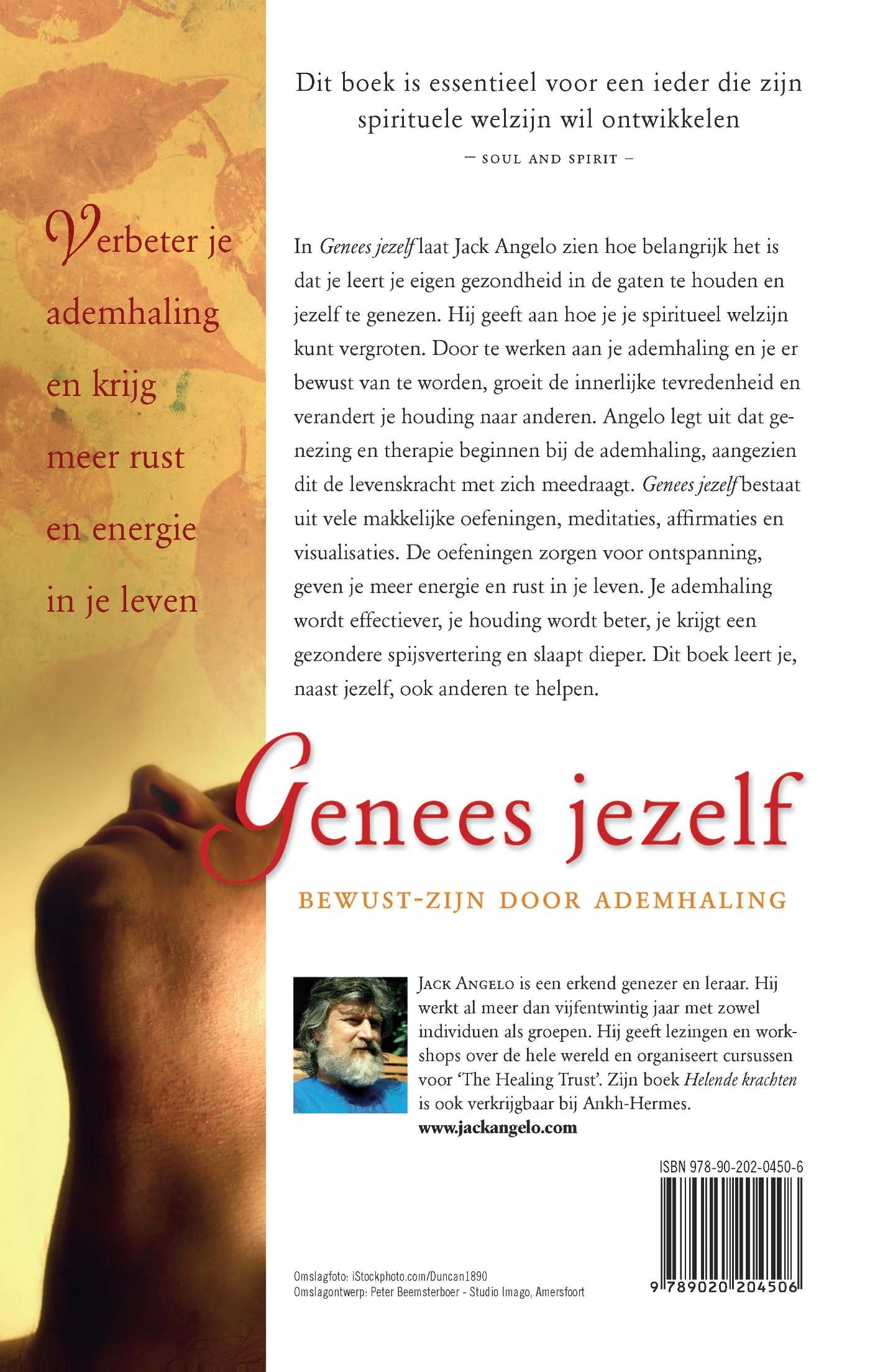 In Genees jezelf laat Jack Angelo zien hoe belangrijk het is dat je leert je eigen gezondheid in de gaten te houden en jezelf te genezen. Hij geeft aan hoe je je spiritueel welzijn kunt vergroten. Door te werken aan je ademhaling en je er bewust van te worden, groeit de innerlijke tevredenheid en verandert je houding naar anderen. Angelo legt uit dat genezing en therapie beginnen bij de ademhaling, aangezien dit de levenskracht met zich meedraagt.