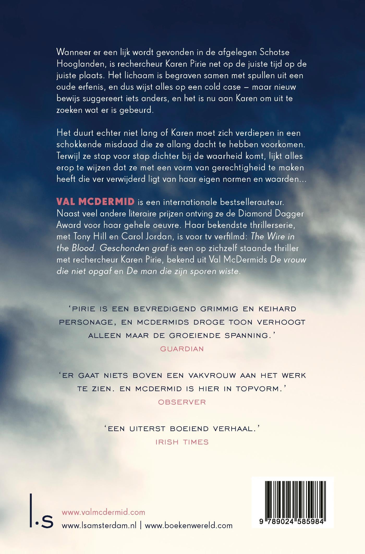 Wanneer er in Geschonden graf, het vijfde deel van Val McDermids Karen Pirie-thrillerreeks, een lijk wordt gevonden in de afgelegen Schotse Hooglanden, is rechercheur Karen Pirie net op de juiste tijd op de juiste plaats.