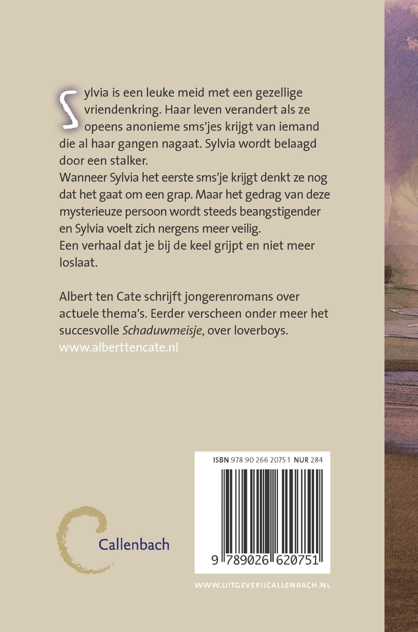 Sylvia is een vlotte meid met een gezellige vriendenkring. Haar leven verandert als ze opeens anonieme sms’jes krijgt van iemand die al haar gangen nagaat. Sylvia wordt belaagd door een stalker. Wanneer Sylvia het eerste sms’je krijgt denkt ze nog dat het gaat om een grap. Maar het gedrag van deze onbekende persoon wordt langzamerhand beangstigender. Wanneer hij haar ’s nachts opzoekt in de vakantiewoning van haar vader en op de ramen bonst, weet ze dat er iets goed mis is. Wie zit er zo wanhopig achter haar aan? Een verhaal dat je in z’n greep houdt tot de laatste bladzijde.