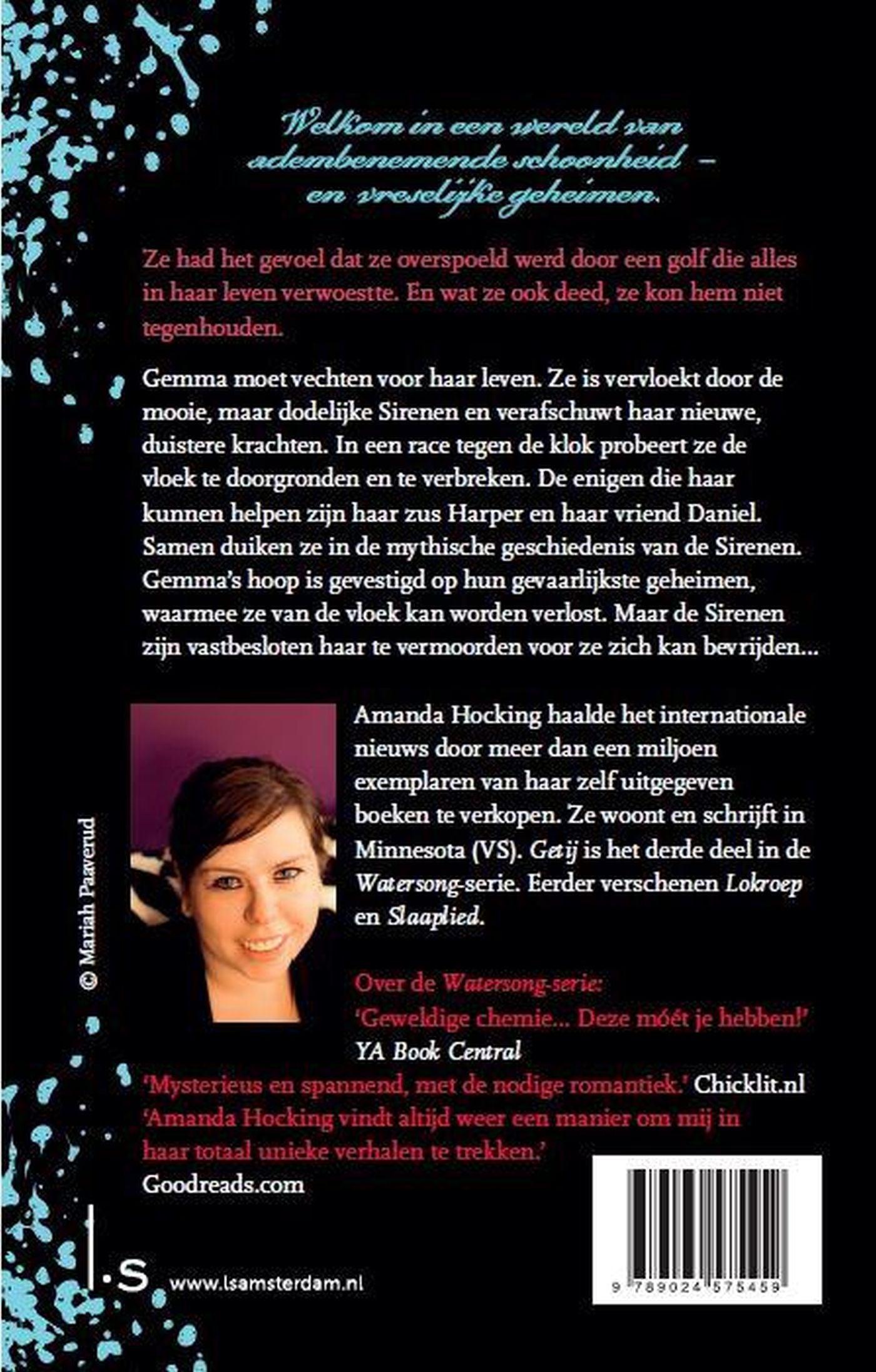 Amanda Hocking haalde het internationale nieuws door meer dan een miljoen exemplaren van haar zelf uitgegeven boeken te verkopen. Ze woont en schrijft in Minnesota (VS). Getij is na Lokroep en Slaaplied het derde deel in de Watersong-serie.