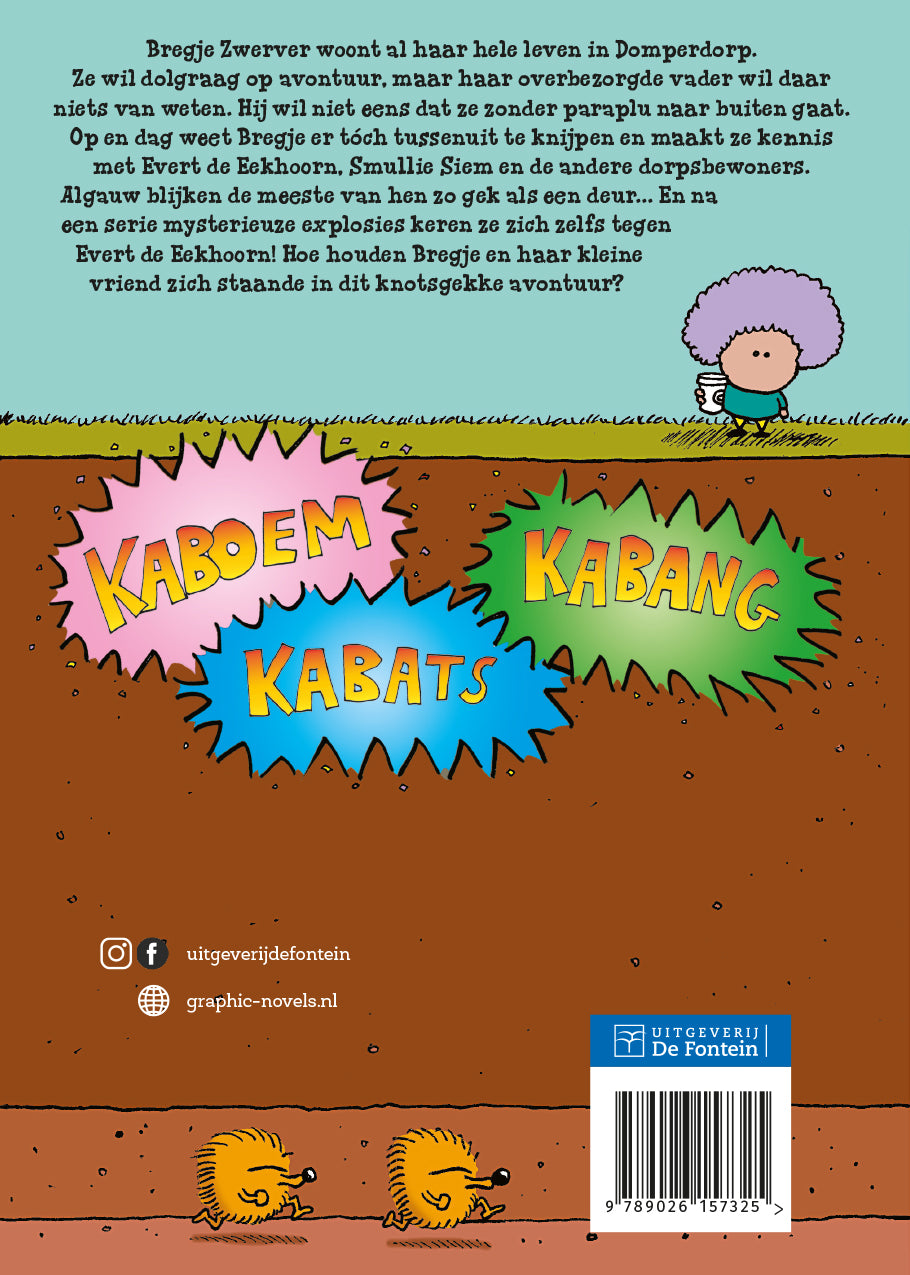niets van weten. Hij wil niet eens dat ze zonder paraplu naar buiten gaat. Op en dag weet Bregje er tóch tussenuit te knijpen en maakt ze kennis met Evert de Eekhoorn, Smullie Siem en de andere dorpsbewoners. Algauw blijken de meeste van hen zo gek als een deur... En na een serie mysterieuze explosies keren ze zich zelfs tegen Evert de Eekhoorn! Hoe houden Bregje en haar kleine vriend zich staande in dit knotsgekke avontuur?