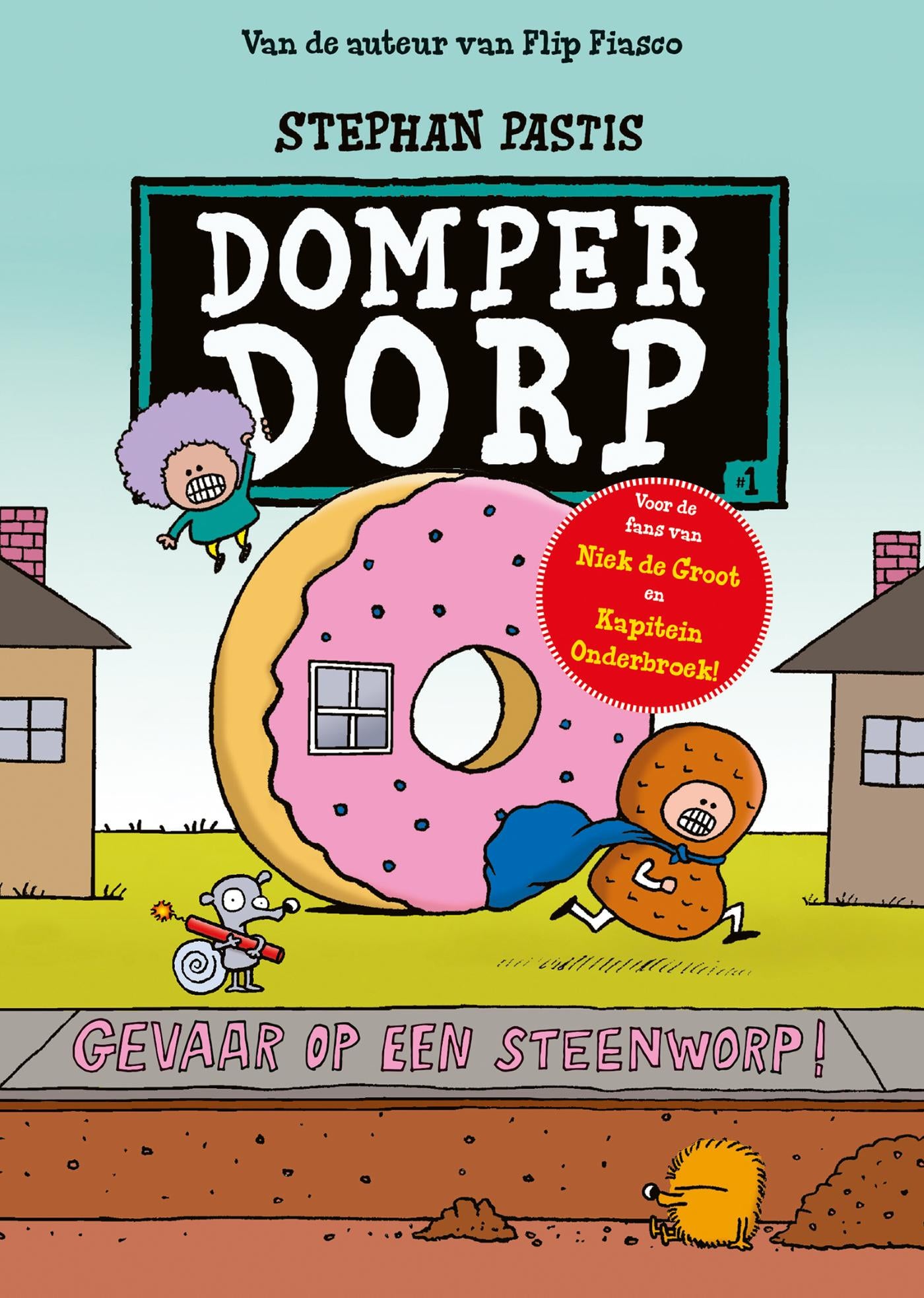 Gevaar op een steenworp! is het eerste deel in de hilarische graphicnovelserie Domperdorp van Stephan Pastis, bekend van Flip Fiasco. Voor kinderen vanaf 10 jaar.