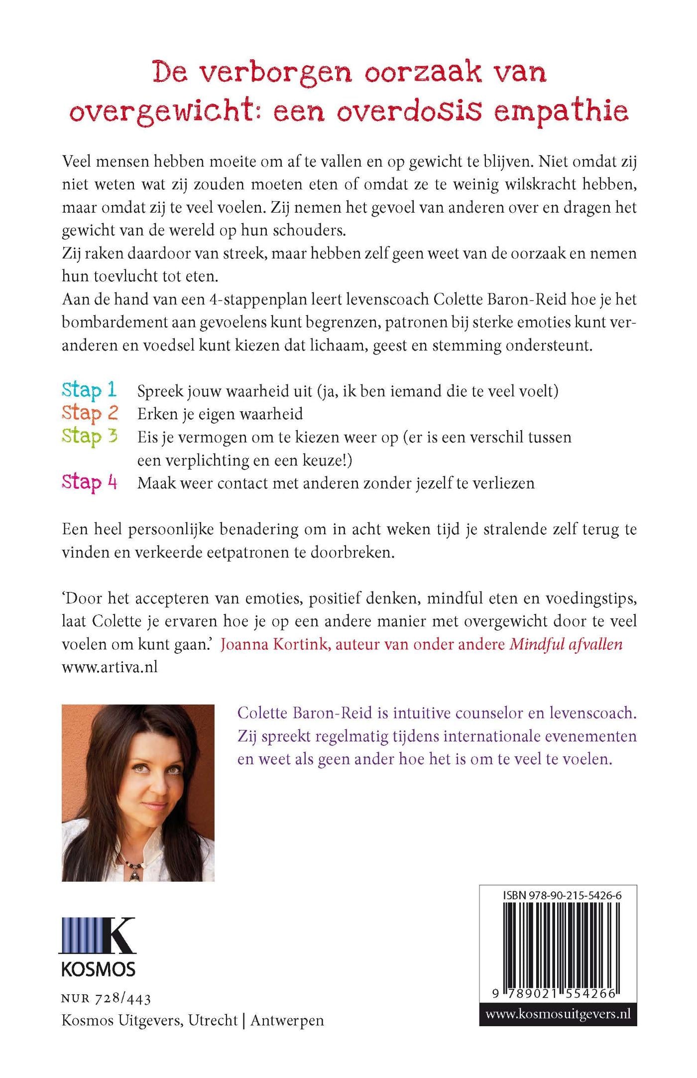Veel vrouwen hebben moeite om af te vallen en op gewicht te blijven. Niet omdat zij niet weten wat zij zouden moeten eten of te weinig wilskracht hebben: zij voelen te veel. Zij nemen de gevoelens van anderen over en dragen het gewicht van de wereld op hun schouders. Ze hebben geen idee waarom ze van streek zijn, en gaan eten. De lezer leert het bombardement aan gevoelens te begrenzen, patronen bij sterke emoties te veranderen, en voedsel te kiezen dat lichaam, geest en stemming ondersteunt.